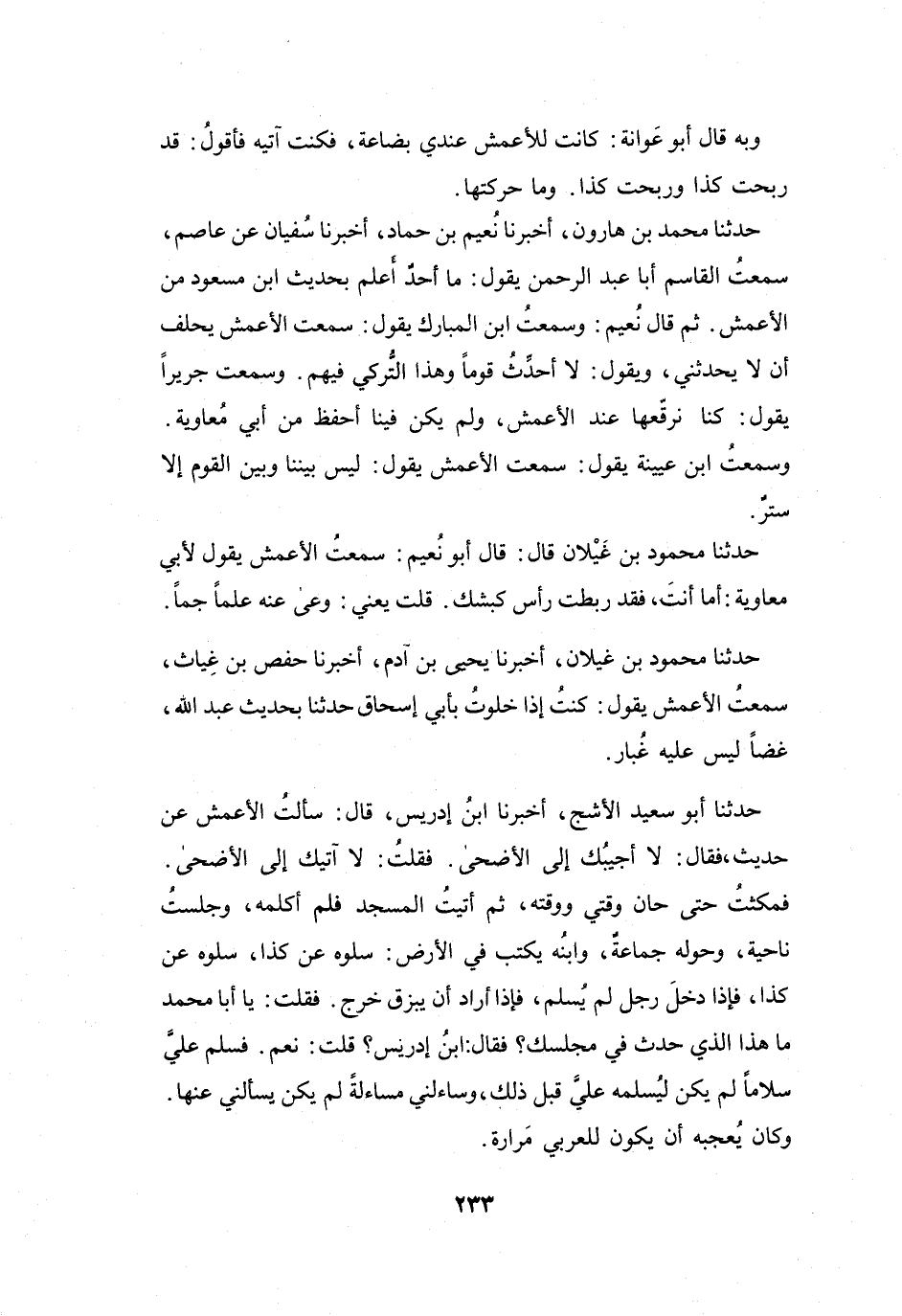 وَسَمِعْتُ ابْنَ عُيَيْنَةَ يَقُوْلُ: سَمِعْتُ الأَعْمَشَ يَقُوْلُ: لَيْسَ بَيْنَنَا وَبَيْنَ القَوْمِ إِلاَّ ستْرٌ.