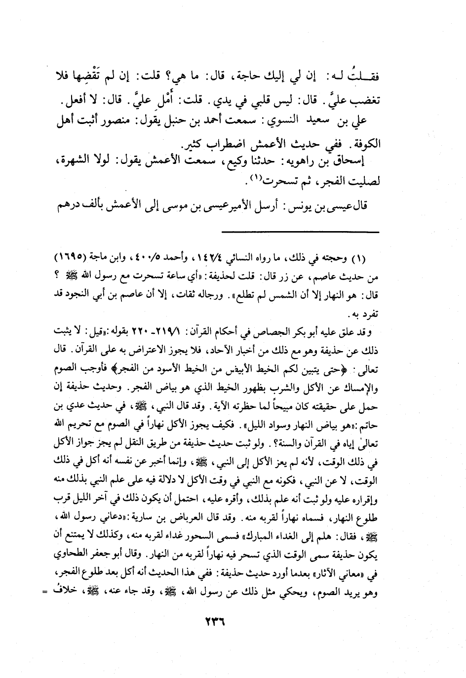 ولو ثبت حديث حذيفة من طريق النقل لم يجز جواز الاكل في ذلك الوقت، لأنه لم يعز الاكل إلى النبي، صلى الله عليه وسلم، وإنما أخبر عن نفسه أنه أكل في ذلك الوقت، لا عن النبي، فكونه مع النبي في وقت الاكل لا دلالة فيه على علم النبي بذلك منه وإقراره عليه ولو ثبت أنه علم بذلك، وأقره عليه، احتمل أن يكون ذلك في آخر الليل قرب طلوع النهار، فسماه نهارا لقربه منه.
