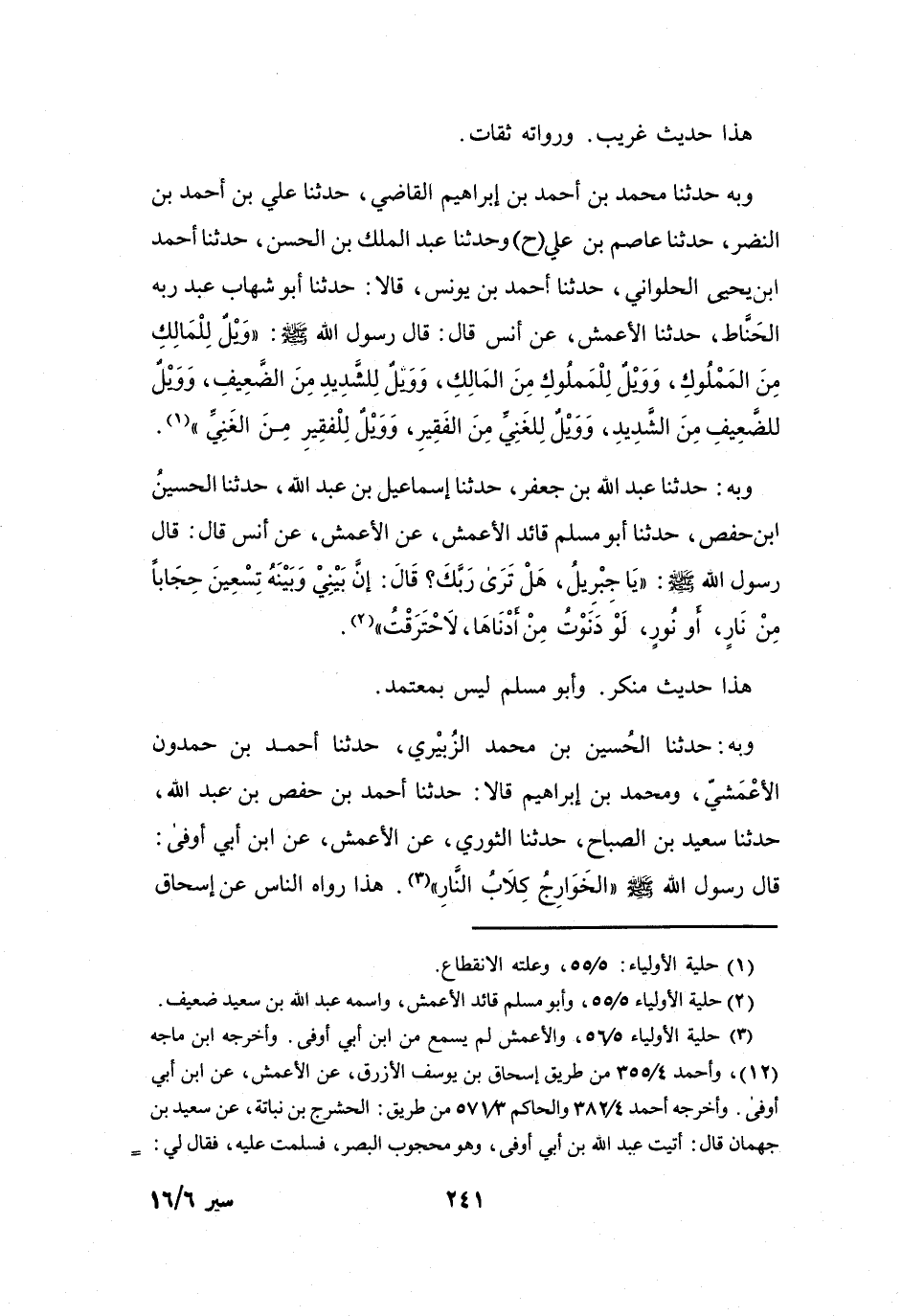 (2) حلية الأولياء 5 / 55، وأبو مسلم قائد الأعمش، واسمه عبد الله بن سعيد ضعيف.