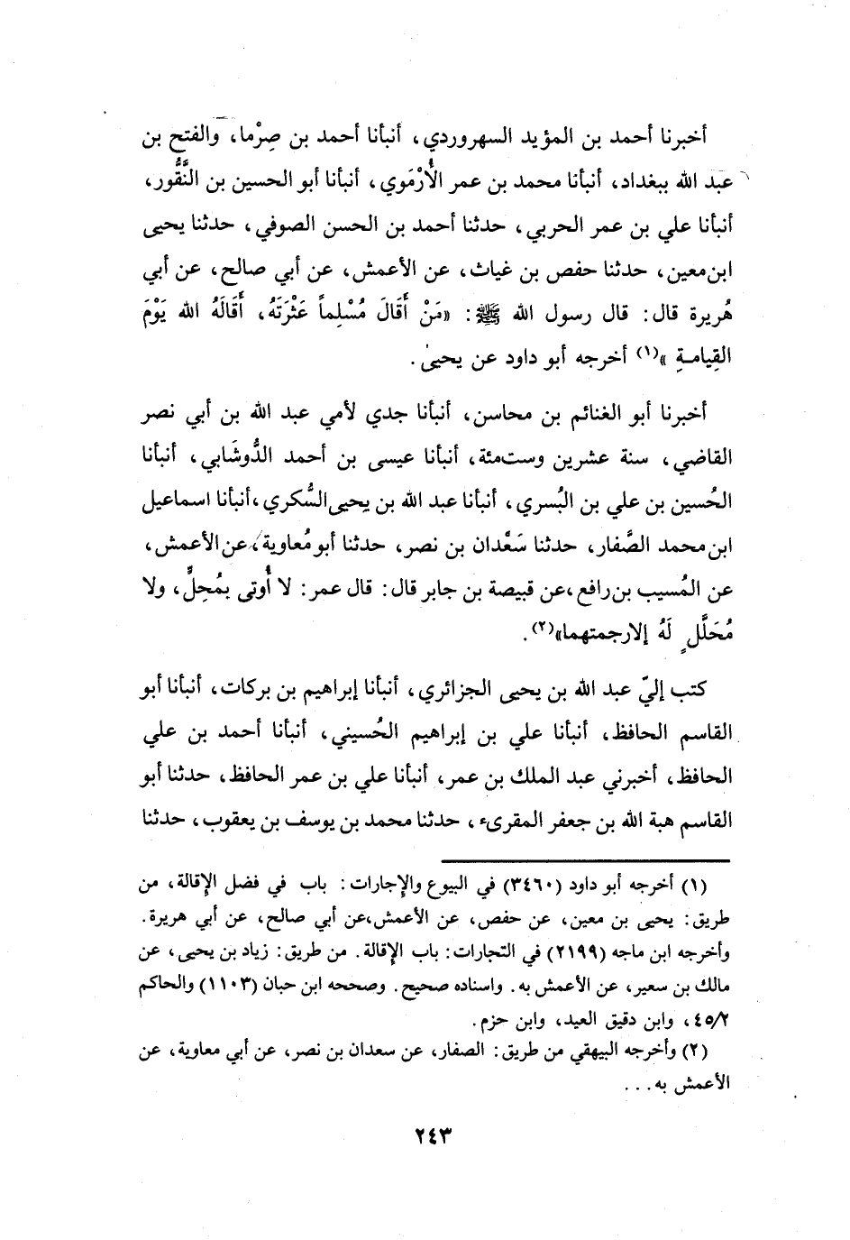 (1) أخرجه أبو داود (3460) في البيوع والاجارات: باب في فضل الاقالة، من طريق: يحيى بن معين، عن حفص، عن الأعمش، عن أبي صالح، عن أبي هريرة.