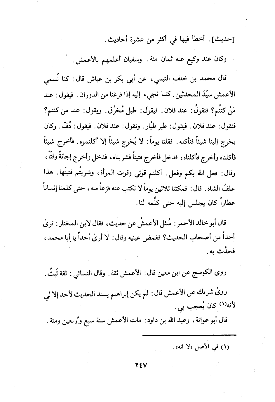 رَوَى: الكَوْسَجُ، عَنِ ابْنِ مَعِيْنٍ، قَالَ: الأَعْمَشُ ثِقَةٌ.