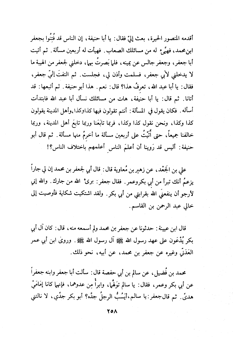 ثُمَّ قَالَ جَعْفَرٌ: يَا سَالِمُ! أَيَسُبُّ الرَّجُلُ جَدَّه، أَبُو بَكْرٍ جَدِّي، لاَ نَالَتْنِي