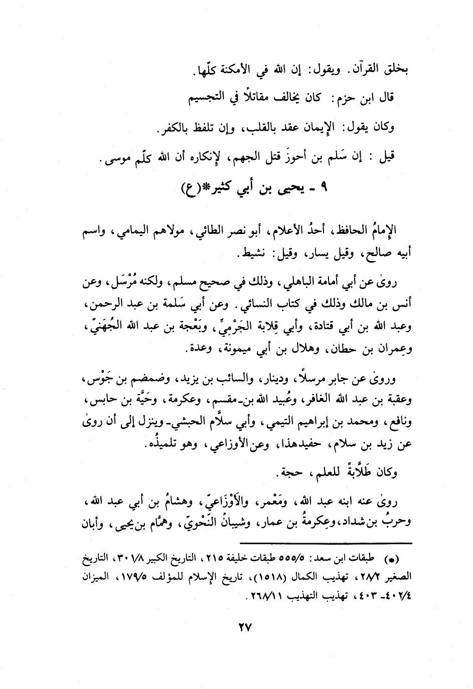 9 - يَحْيَى بنُ أَبِي كَثِيْرٍ أَبُو نَصْرٍ الطَّائِيُّ مَوْلاَهُم * (ع)