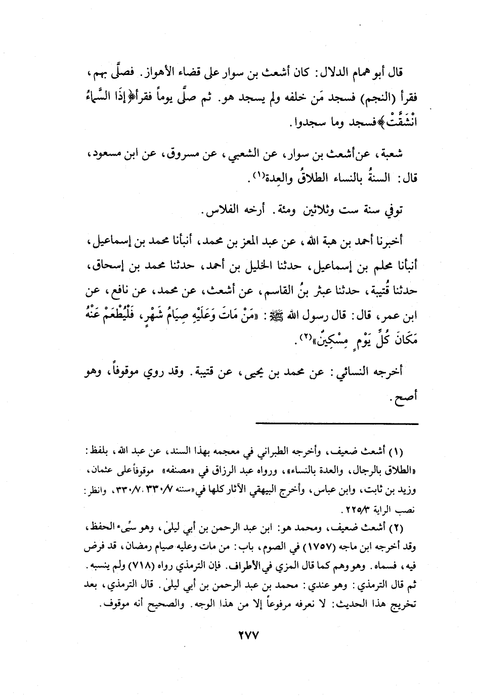 شُعْبَةُ: عَنْ أَشْعَثَ بنِ سَوَّارٍ، عَنِ الشَّعْبِيِّ، عَنْ مَسْرُوْقٍ، عَنِ ابْنِ مَسْعُوْدٍ، قَالَ: