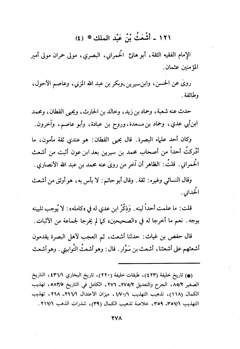 121 - أَشْعَثُ بنُ عَبْدِ المَلِكِ أَبُو هَانِىء الحُمْرَانِيُّ * (4)