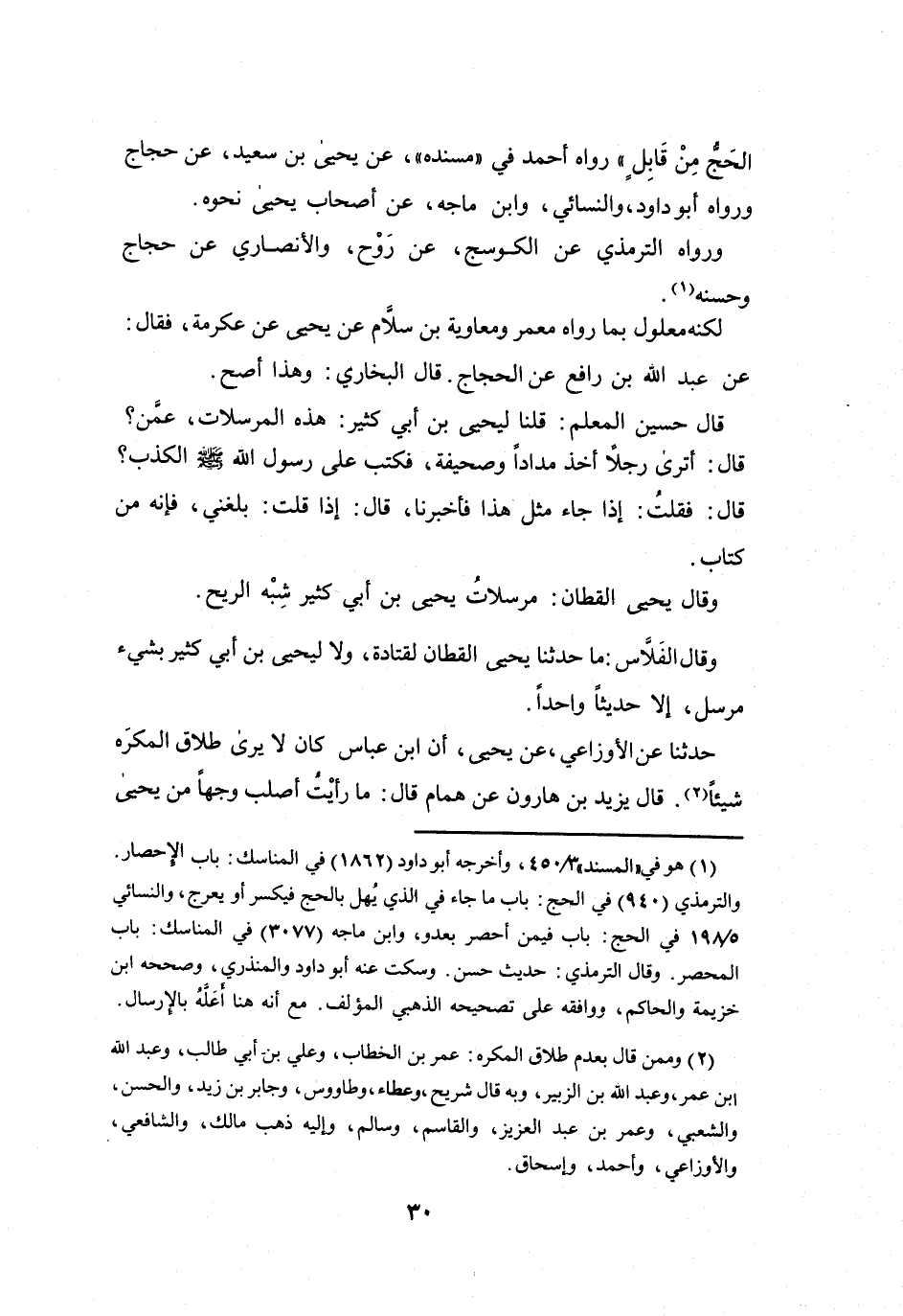 وَقَالَ الفَلاَّسُ: مَا حَدَّثَنَا يَحْيَى القَطَّانُ لِقَتَادَةَ، وَلاَ لِيَحْيَى بنِ أَبِي كَثِيْرٍ بِشَيْءٍ مُرْسَلٍ، إِلاَّ حَدِيْثاً وَاحِداً.