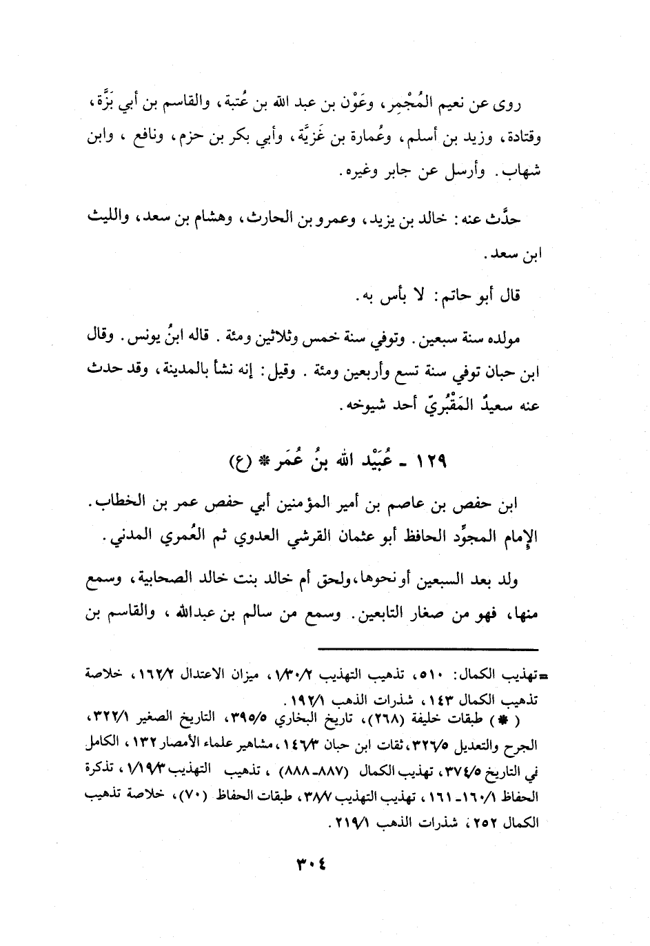 129 - عُبَيْدُ اللهِ بنُ عُمَرَ العَدَوِيُّ * (ع)