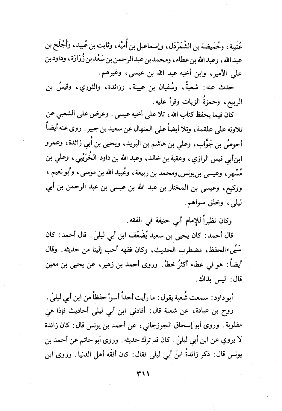 أَبُو دَاوُدَ: سَمِعْتُ شُعْبَةَ يَقُوْلُ: مَا رَأَيْتُ أَحَداً أَسوأَ حِفْظاً مِنِ ابْنِ أَبِي لَيْلَى.