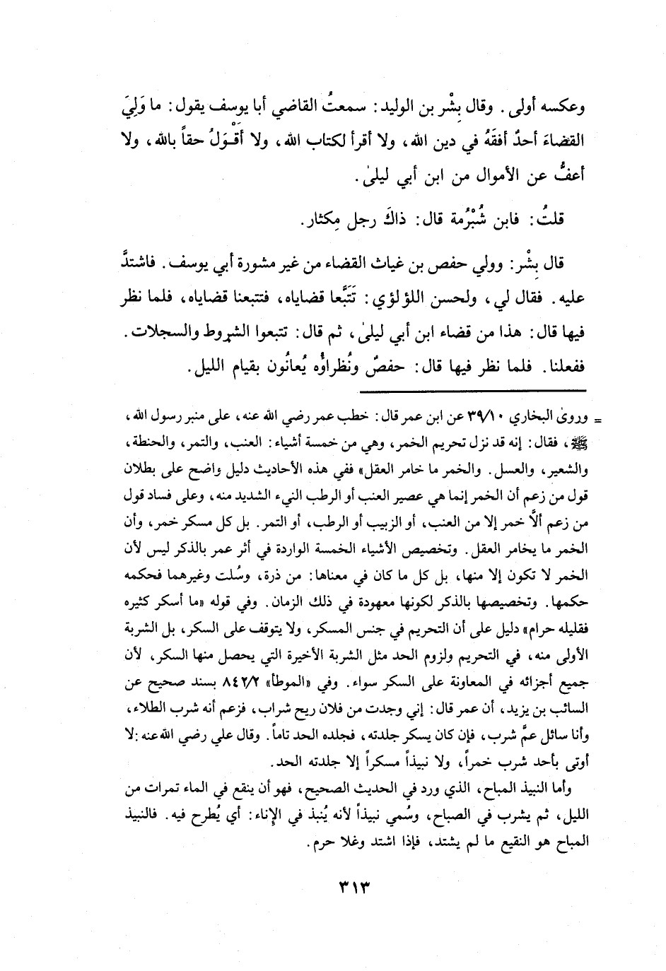= وروى البخاري 10 / 39 عن ابن عمر قال: خطب عمر رضى الله عنه، على منبر رسول الله، صلى الله عليه وسلم، فقال: إنه قد نزل تحريم الخمر، وهي من خمسة أشياء: العنب، والتمر، والحنطة، والشعير، والعسل.