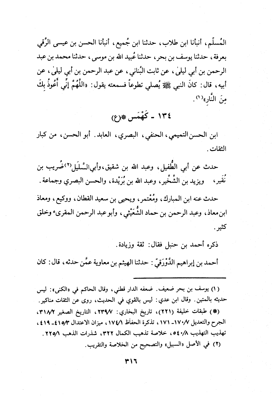 134 - كَهْمَسُ بنُ الحَسَنِ التَّمِيْمِيُّ الحَنَفِيُّ البَصْرِيُّ * (ع)