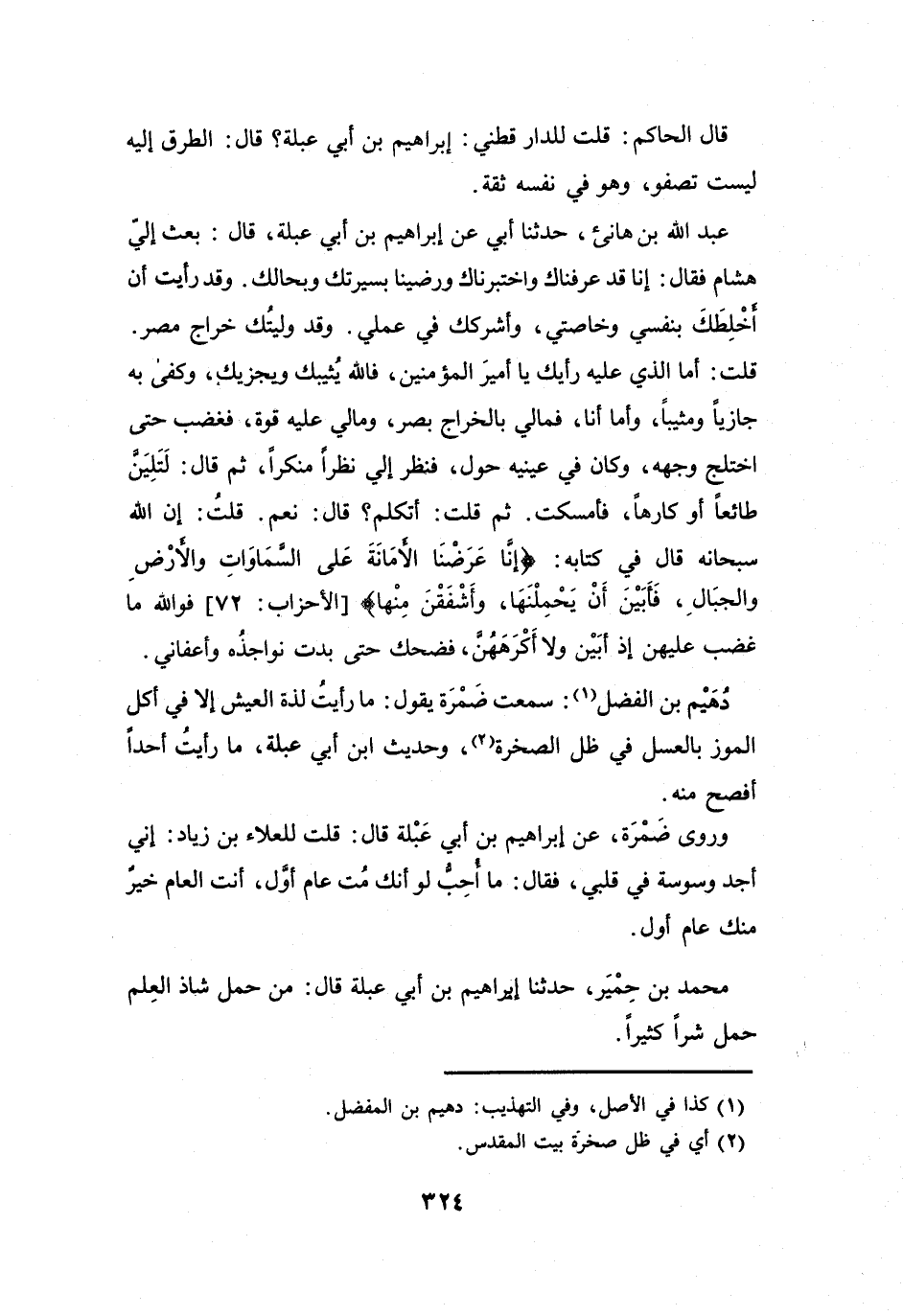 قَالَ الحَاكِمُ: قُلْتُ لِلدَّارَقُطْنِيِّ: إِبْرَاهِيْمُ بنُ أَبِي عَبْلَةَ؟