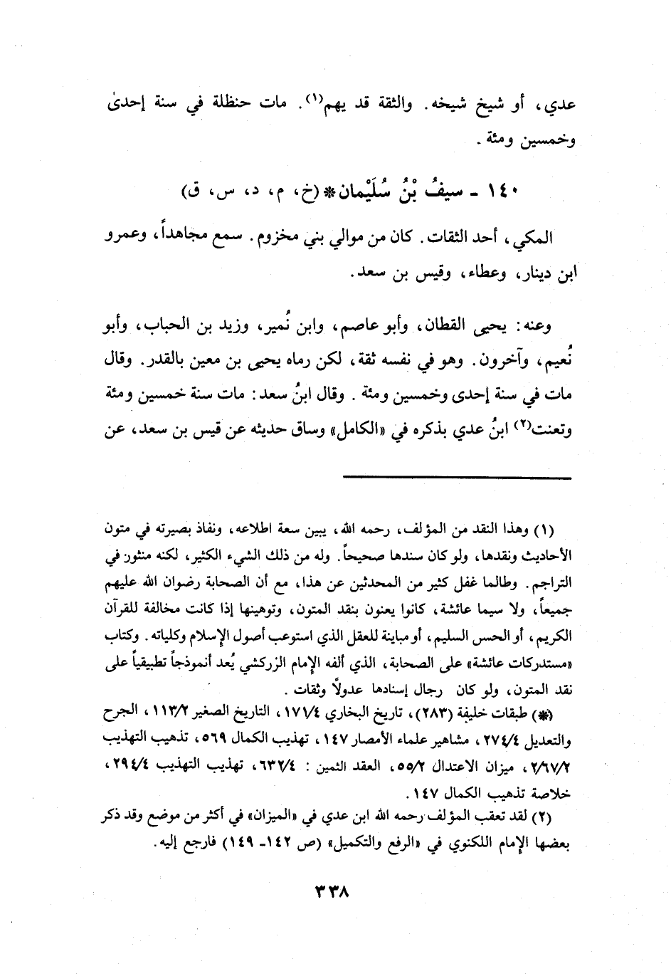 (2) لقد تعقب المؤلف رحمه الله ابن عدي في " الميزان " في أكثر من موضع وقد ذكر بعضها الامام اللكنوي في " الرفع والتكميل " (ص 142 - 149) فارجع إليه.