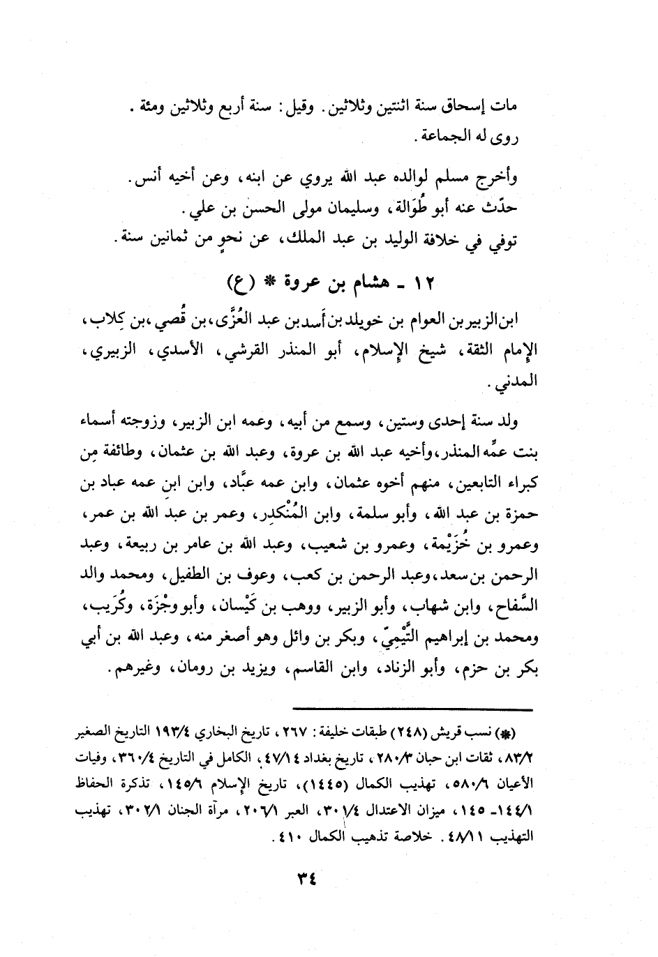 12 - هِشَامُ بنُ عُرْوَةَ بنِ الزُّبَيْرِ بنِ العَوَّامِ الأَسَدِيُّ * (ع)