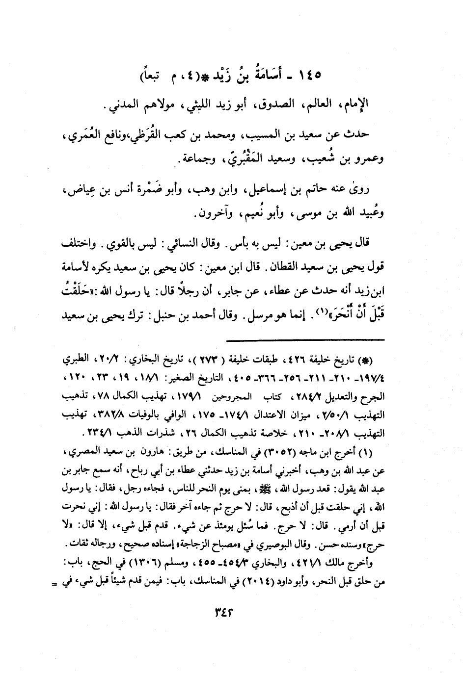 145 - أُسَامَةُ بنُ زَيْدٍ أَبُو زَيْدٍ اللَّيْثِيُّ * (4، م، تَبَعاً)