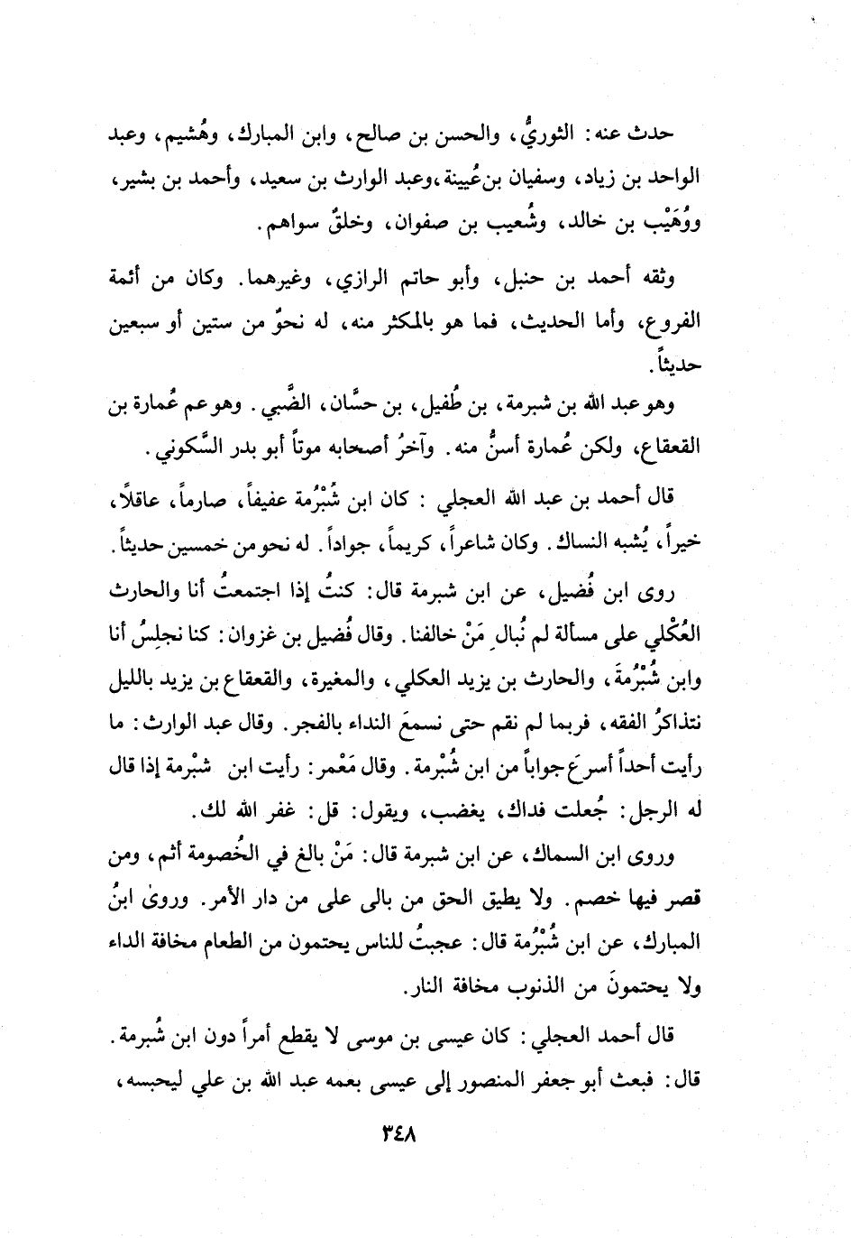 رَوَى: ابْنُ فُضَيْلٍ، عَنِ ابْنِ شُبْرُمَةَ، قَالَ: