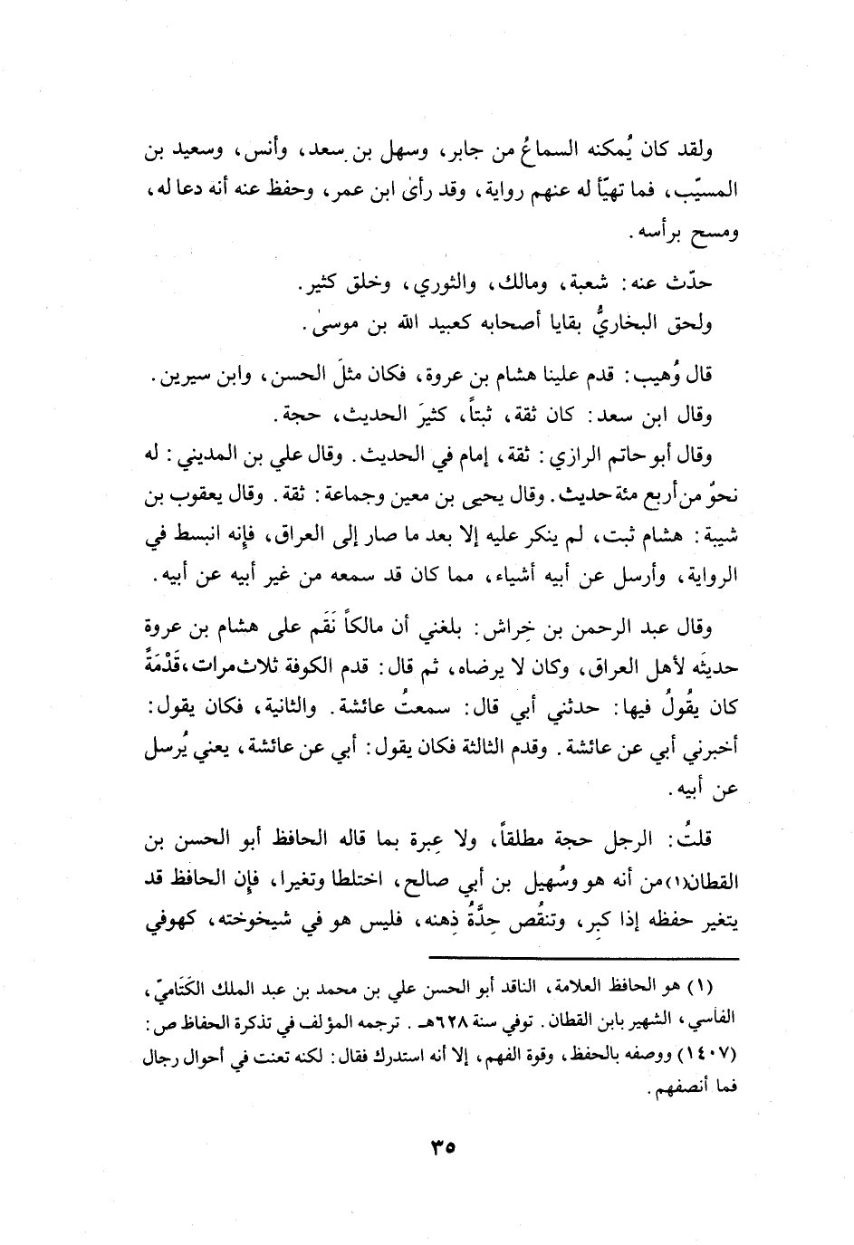 قُلْتُ: الرَّجُلُ حُجَّةٌ مُطْلَقاً، وَلاَ عِبرَةَ بِمَا قَالَهُ الحَافِظُ أَبُو الحَسَنِ بنُ القَطَّانِ (1) مِنْ أَنَّهُ هُوَ وَسُهَيْلُ بنُ أَبِي صَالِحٍ اخْتَلَطَا وَتَغَيَّرَا، فَإِنَّ الحَافِظَ قَدْ يَتَغَيَّرُ حِفْظُه إِذَا كَبِرَ، وَتَنْقُصُ حِدَّةُ ذِهْنِهِ، فَلَيْسَ هُوَ فِي شَيْخُوْخَتِه كَهُوَ فِي