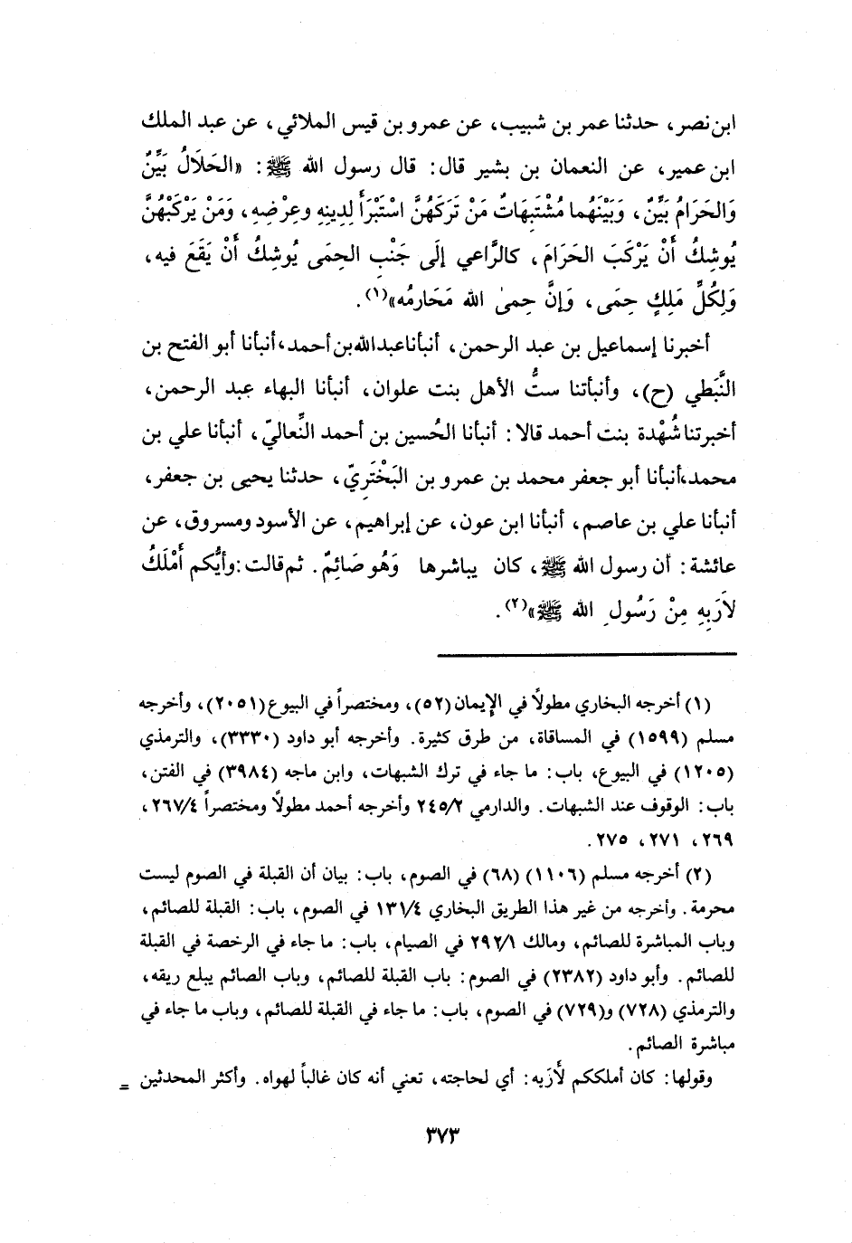 قَالَ رَسُوْلُ اللهِ -صَلَّى اللَّهُ عَلَيْهِ وَسَلَّمَ-: (الحَلاَلُ بَيِّنٌ وَالحَرَامُ بَيِّنٌ، وَبَيْنَهُمَا مُشْتَبِهَاتٌ، مَنْ تَرَكَهُنَّ اسْتَبْرَأَ لِدِيْنِهِ وَعِرْضِهِ، وَمَنْ يَرْكَبْهُنَّ يُوْشِكُ أَنْ يَرْكَبَ الحَرَامَ، كَالرَّاعِي إِلَى جَنْبِ الحِمَى يُوشِكُ أَنْ يَقَعَ فِيْهِ، وَلِكُلِّ مَلِكٍ حِمَىً، وَإِنَّ حِمَى اللهِ مَحَارِمُهُ (1)) .