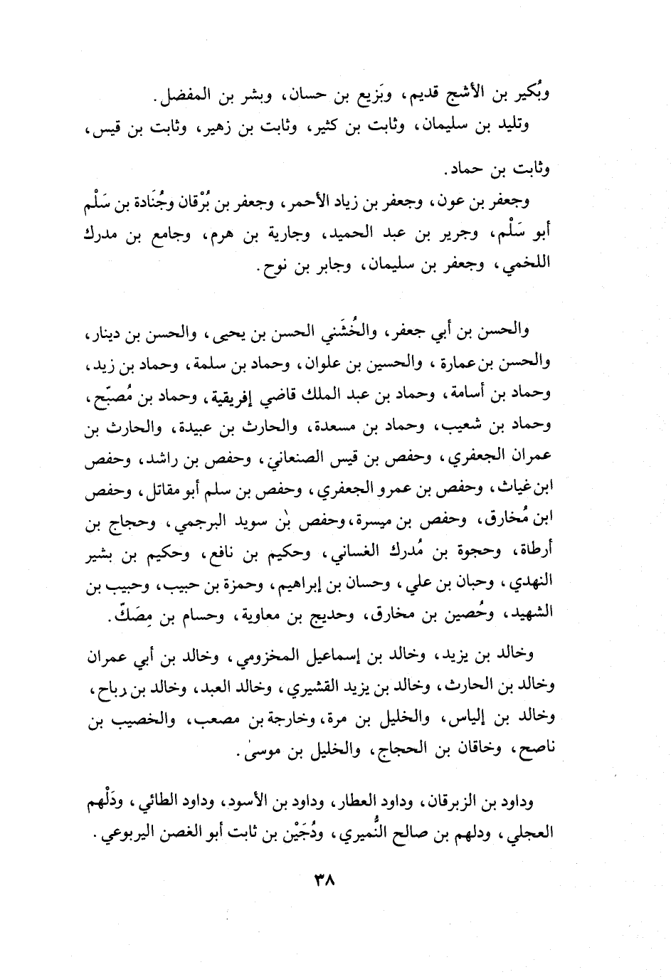 وَبُكَيْرُ بنُ الأَشَجِّ - قَدِيْمٌ - وَبَزِيْعُ بنُ حَسَّانٍ، وَبِشْرُ بنُ المُفَضَّلِ، وَتَلِيْدُ بنُ سُلَيْمَانَ.