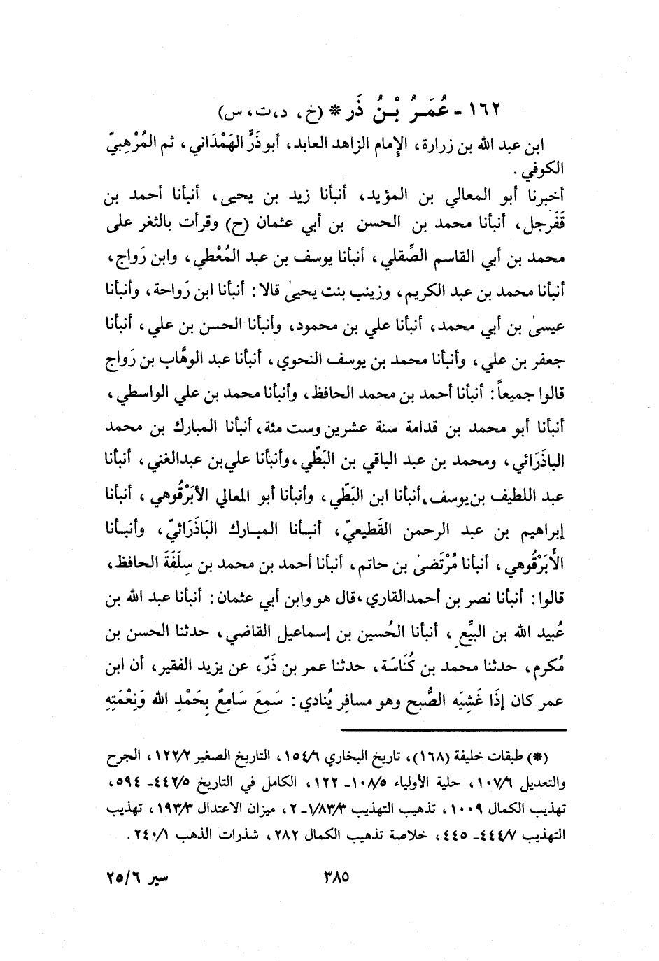 162 - عُمَرُ بنُ ذَرِّ بنِ عَبْدِ اللهِ بنِ زُرَارَةَ الهَمْدَانِيُّ * (خَ، د، ت، س)