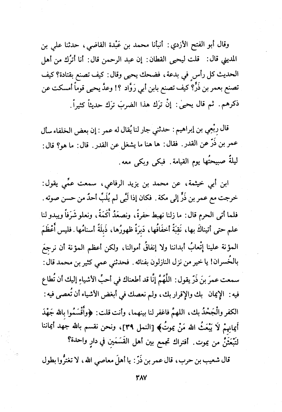 فَضَحِكَ يَحْيَى، وَقَالَ: كَيْفَ تَصْنَع بِقَتَادَةَ؟ كَيْفَ تَصْنَعُ بِعُمَرَ بنِ ذَرٍّ؟ كَيْفَ تَصْنَعُ بِابْنِ أَبِي رَوَّادٍ؟