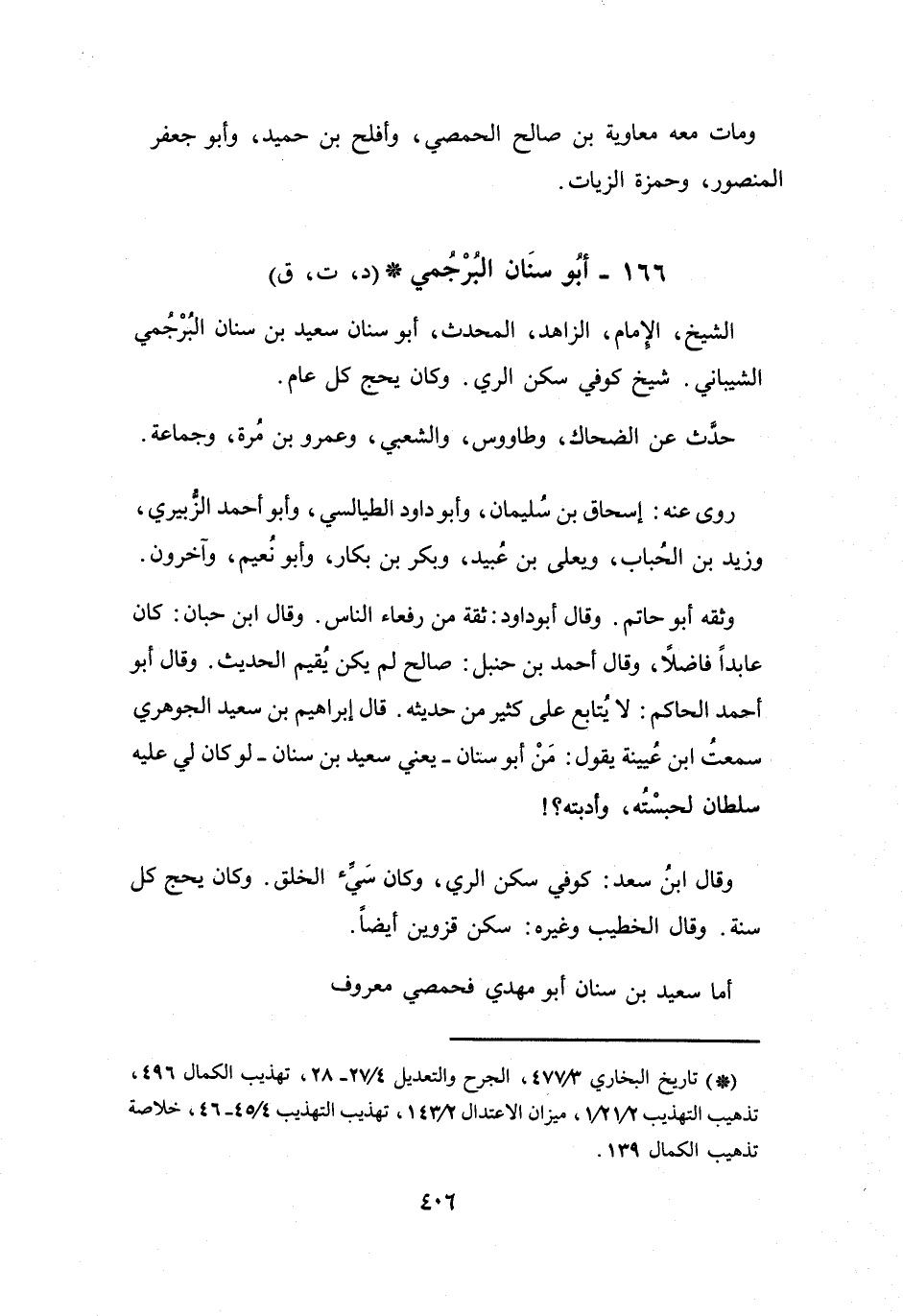 166 - أَبُو سِنَانٍ البُرْجُمِيُّ سَعِيْدُ بنُ سِنَانٍ * (د، ت، ق)