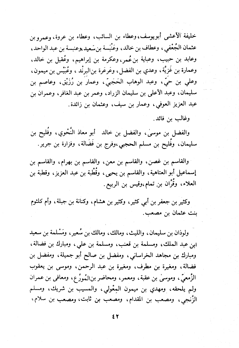خَلِيْفَةَ الأَعْشَى أَبُو يُوْسُفَ، وَعَطَاءُ بنُ السَّائِبِ، وَعَطَاءُ بنُ عُرْوَةَ، وَعَمْرُو بنُ عُثْمَانَ الجُعْفِيُّ، وَعَطَّافُ بنُ خَالِدٍ، وَعَنْبَسَةُ بنُ سَعِيْدٍ، وَعَنْبَسَةُ بنُ عَبْدِ الوَاحِدِ، وَعَابِدُ بنُ حَبِيْبٍ، وَعَبَايَةُ بنُ عُمَرَ، وَعِكْرِمَةُ بنُ إِبْرَاهِيْمَ، وَعُقَيْلُ بنُ خَالِدٍ، وَعُمَارَةُ بنُ غَزِيَّةَ، وَعَدِيُّ بنُ الفَضْلِ، وَعَرْعَرَةُ بنُ البِرِنْدِ، وَعُبَيْسُ بنُ مَيْمُوْنٍ، وَعَلِيُّ بنُ حَيٍّ، وَعَبْدُ الوَهَّابِ الحَجَبِيُّ، وَعَمَّارُ بنُ رُزَيْقٍ، وَعَاصِمُ بنُ سُلَيْمَانَ، وَعَبْدُ الأَعْلَى بنُ سُلَيْمَانَ الزَّرَّادُ، وَعُمَرُ بنُ عَبْدِ الغَافِرِ، وَعِمْرَانُ بنُ عَبْدِ العَزِيْزِ العَوْفِيُّ، وَعَمَّارُ بنُ سَيْفٍ، وَعُثْمَانُ بنُ زَائِدَةَ.