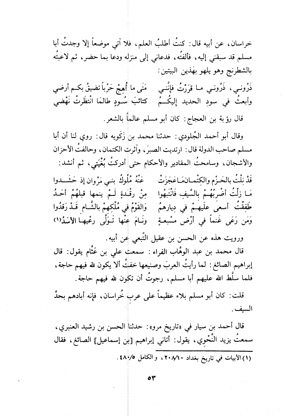 (1) الأبيات في تاريخ بغداد 10 / 208، والكامل 5 / 480.