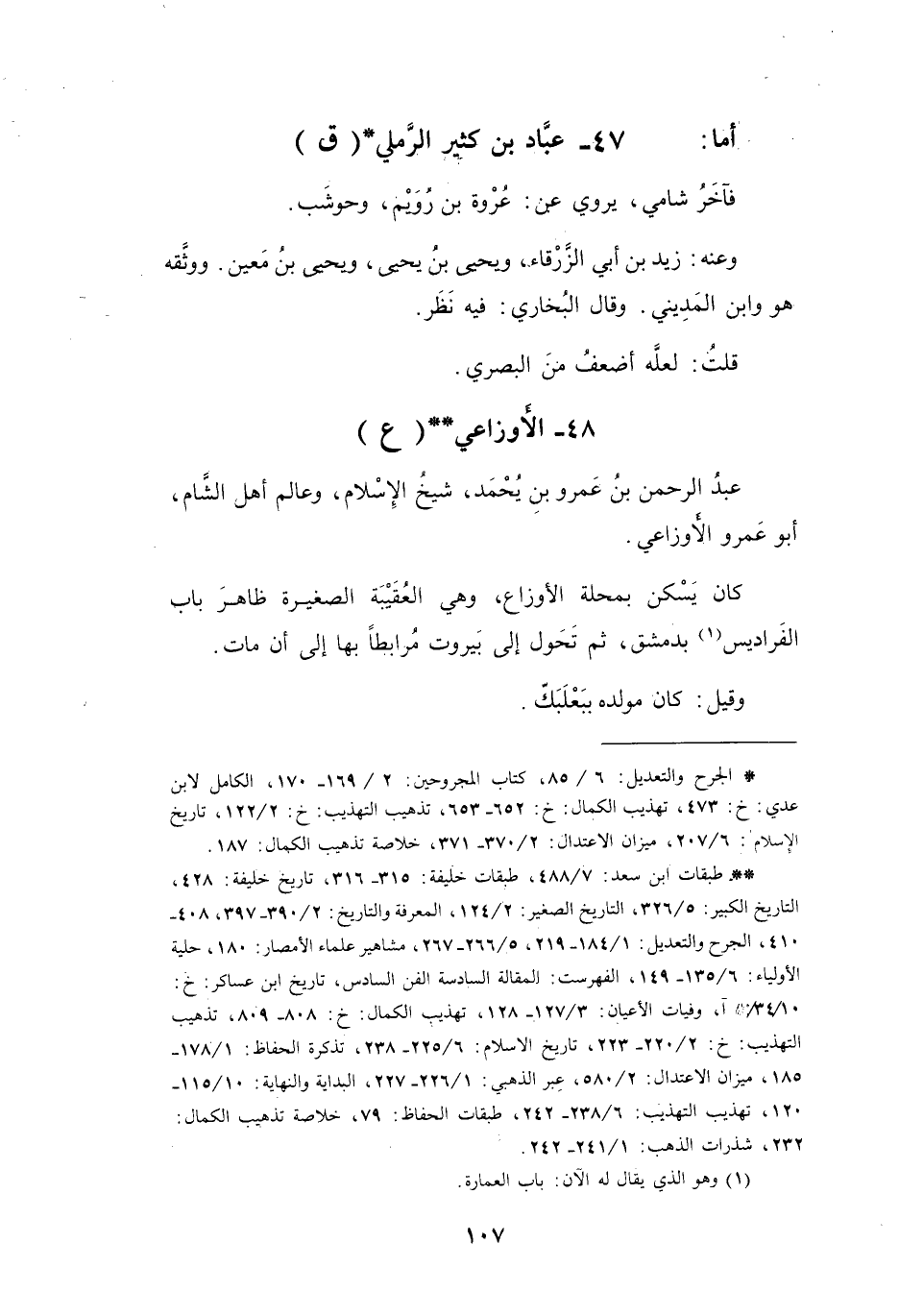 48 - الأَوْزَاعِيُّ عَبْدُ الرَّحْمَنِ بنُ عَمْرِو بنِ يُحْمَدَ ** (ع)