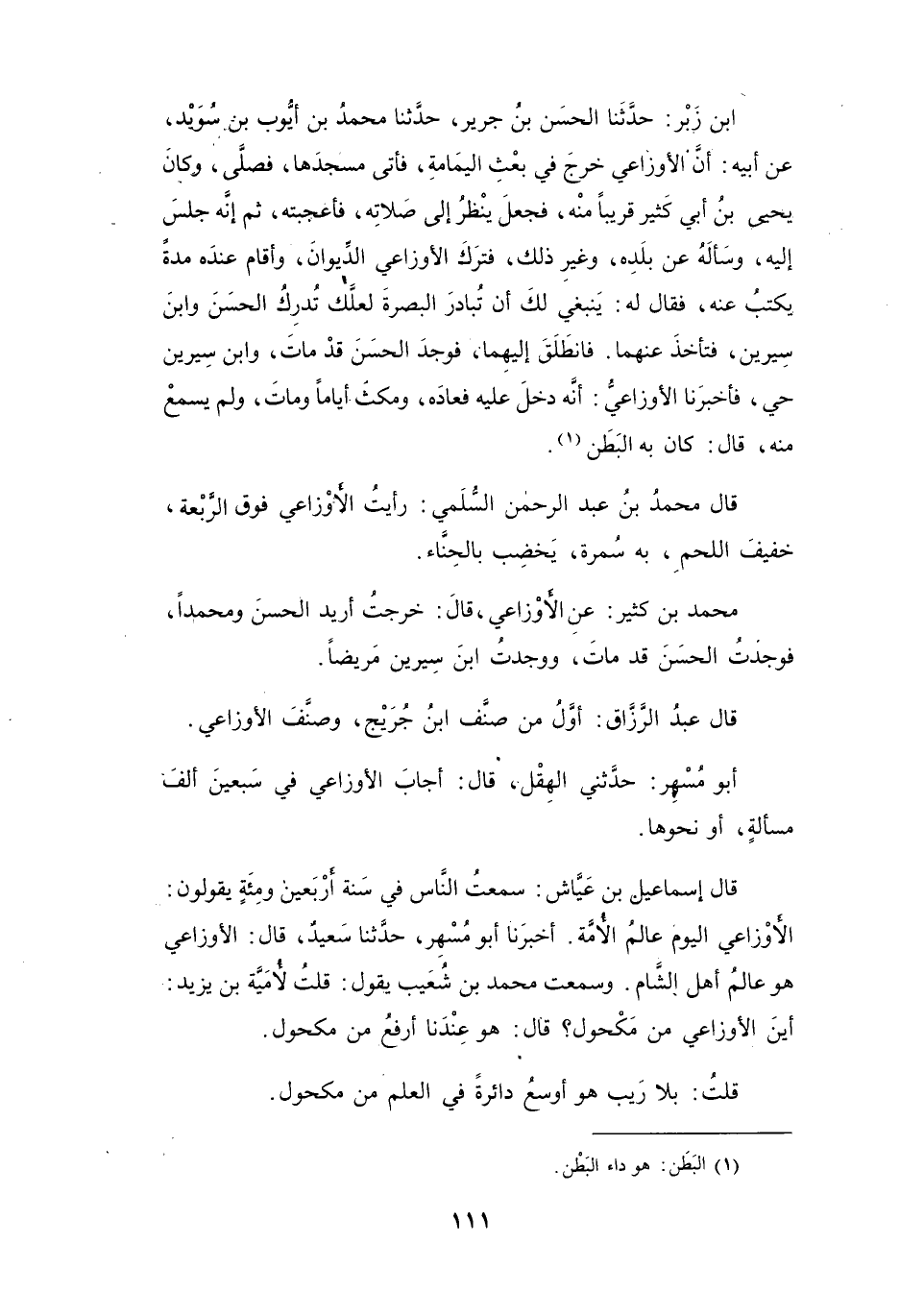 أَخْبَرَنَا أَبُو مُسْهِرٍ: حَدَّثَنَا سَعِيْدٌ، قَالَ: الأَوْزَاعِيُّ هُوَ عَالِمُ أَهْلِ الشَّامِ.
