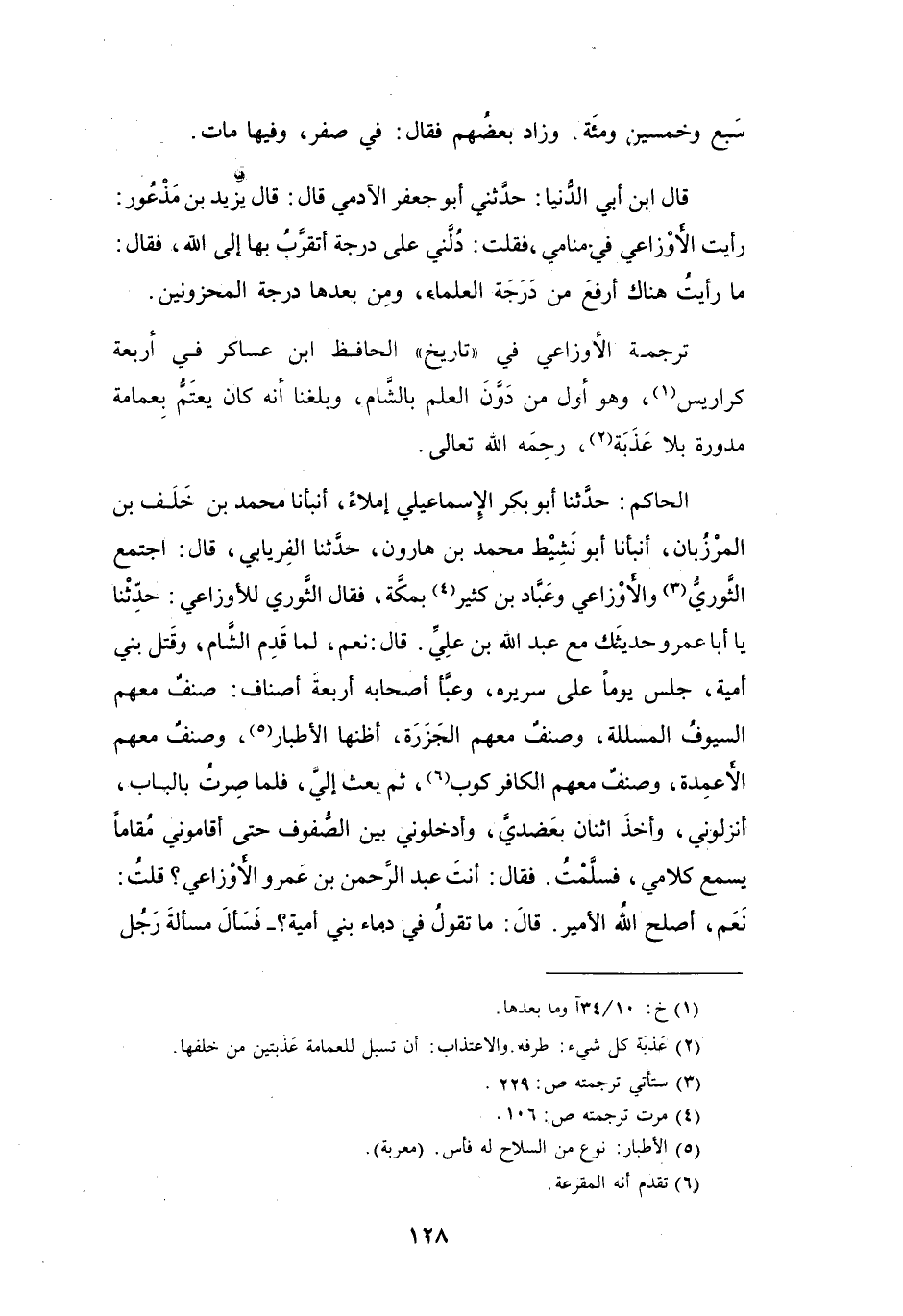 وَهُوَ أَوَّلُ مَنْ دَوَّنَ العِلْمَ بِالشَّامِ، وَبَلَغَنَا أَنَّهُ كَانَ يَعْتَمُّ بِعِمَامَةٍ مُدَوَّرَةٍ بِلاَ عَذَبَةٍ (2) - رَحِمَهُ اللهُ تَعَالَى -.
