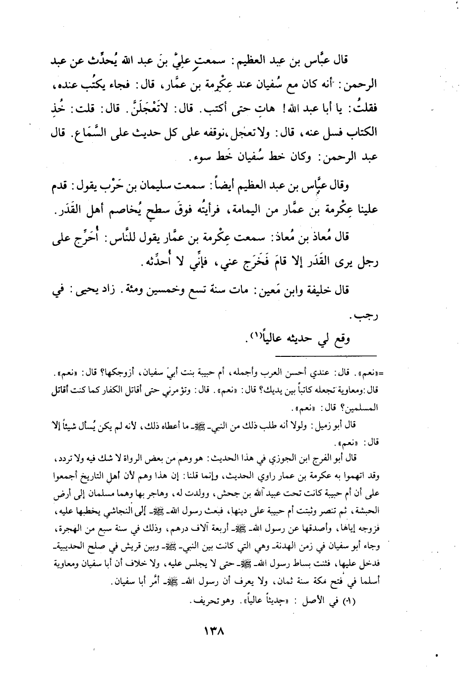 (1) في الأصل: " حديثا عاليا ". وهو تحريف.