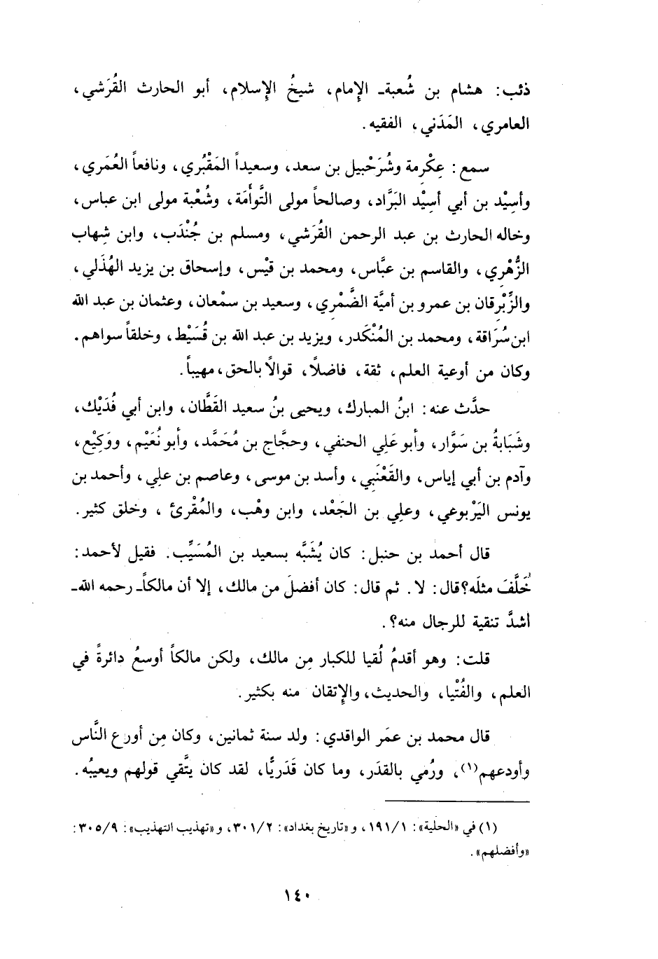 قُلْتُ: وَهُوَ أَقدَمُ لُقْيَا لِلْكِبَارِ مِنْ مَالِكٍ، وَلَكِنَّ مَالِكاً أَوسَعُ دَائِرَةً فِي العِلْمِ، وَالفُتْيَا، وَالحَدِيْثِ، وَالإِتقَانِ مِنْهُ بِكَثِيْرٍ.