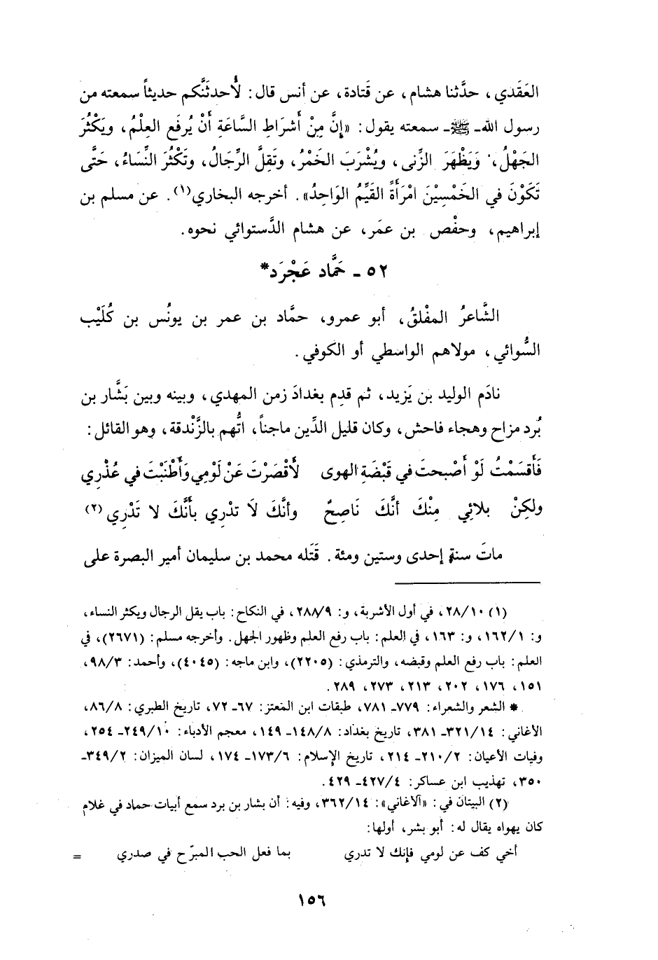 52 - حَمَّادٌ عَجْرَدُ أَبُو عَمْرٍو بنُ عُمَرَ السُّوَائِيُّ مَوْلاَهُم *