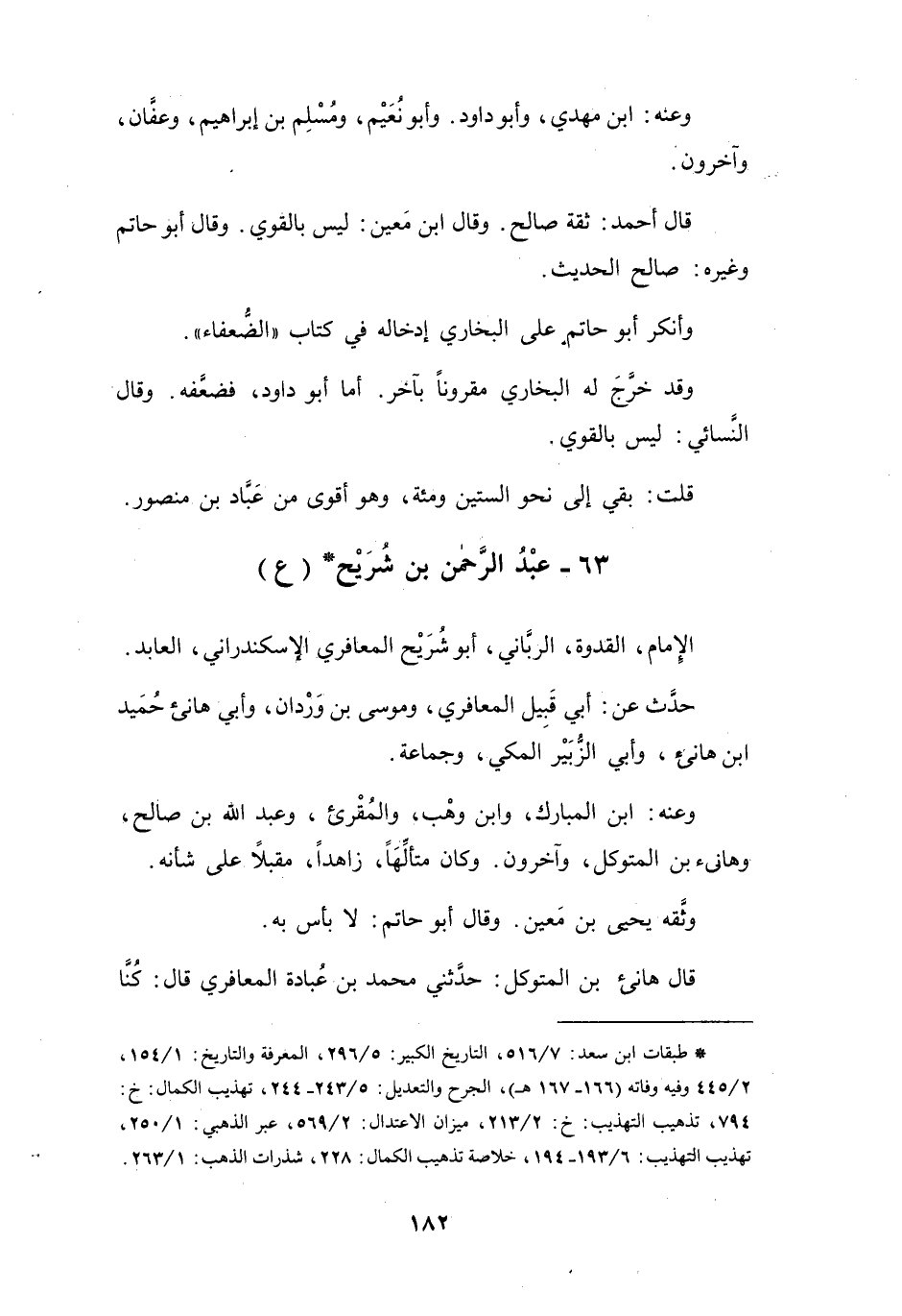 (*) طبقات ابن سعد: 7 / 516، التاريخ الكبير: 5 / 296، المعرفة والتاريخ: 1 / 154، 2 / 445 وفيه وفاته (166 - 167 هـ) ، الجرح والتعديل: 5 / 243 - 244، تهذيب الكمال: خ: 794، تذهيب التهذيب: خ: 2 / 213، ميزان الاعتدال: 2 / 569، عبر الذهبي: 1 / 250، تهذيب التهذيب: 6 / 193 - 194 خلاصة تذهيب الكمال: 228، شذارت الذهب: 1 / 263.
