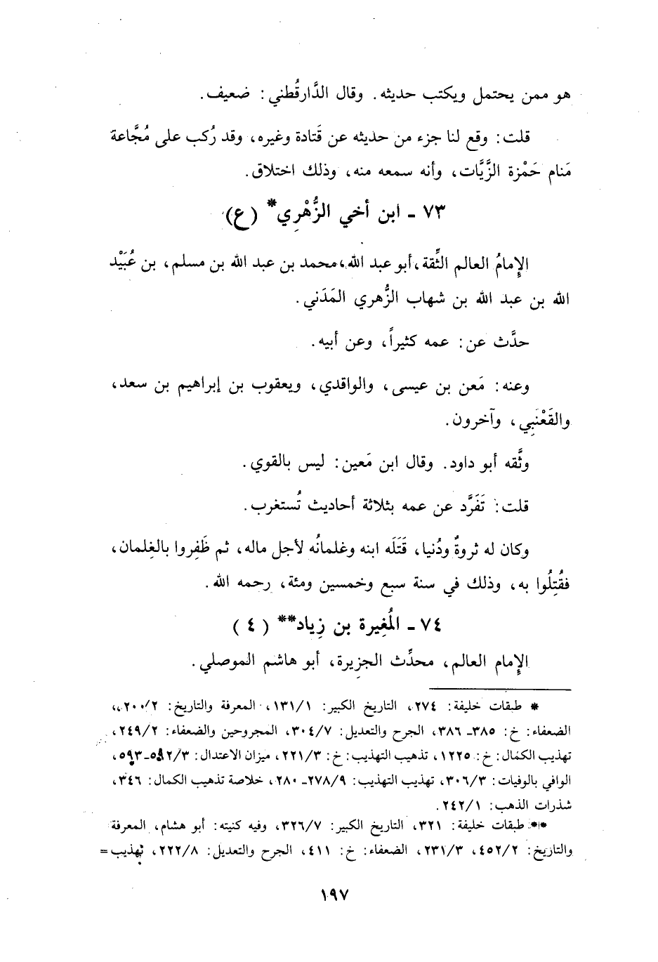 (* *) طبقات خليفة: 321، التاريخ الكبير: 7 / 326، وفيه كنيته: أبو هشام، المعرفة والتاريخ: 2 / 452، 3 / 231، الضعفاء: خ: 411، الجرح والتعديل: 8 / 222، تهذيب =