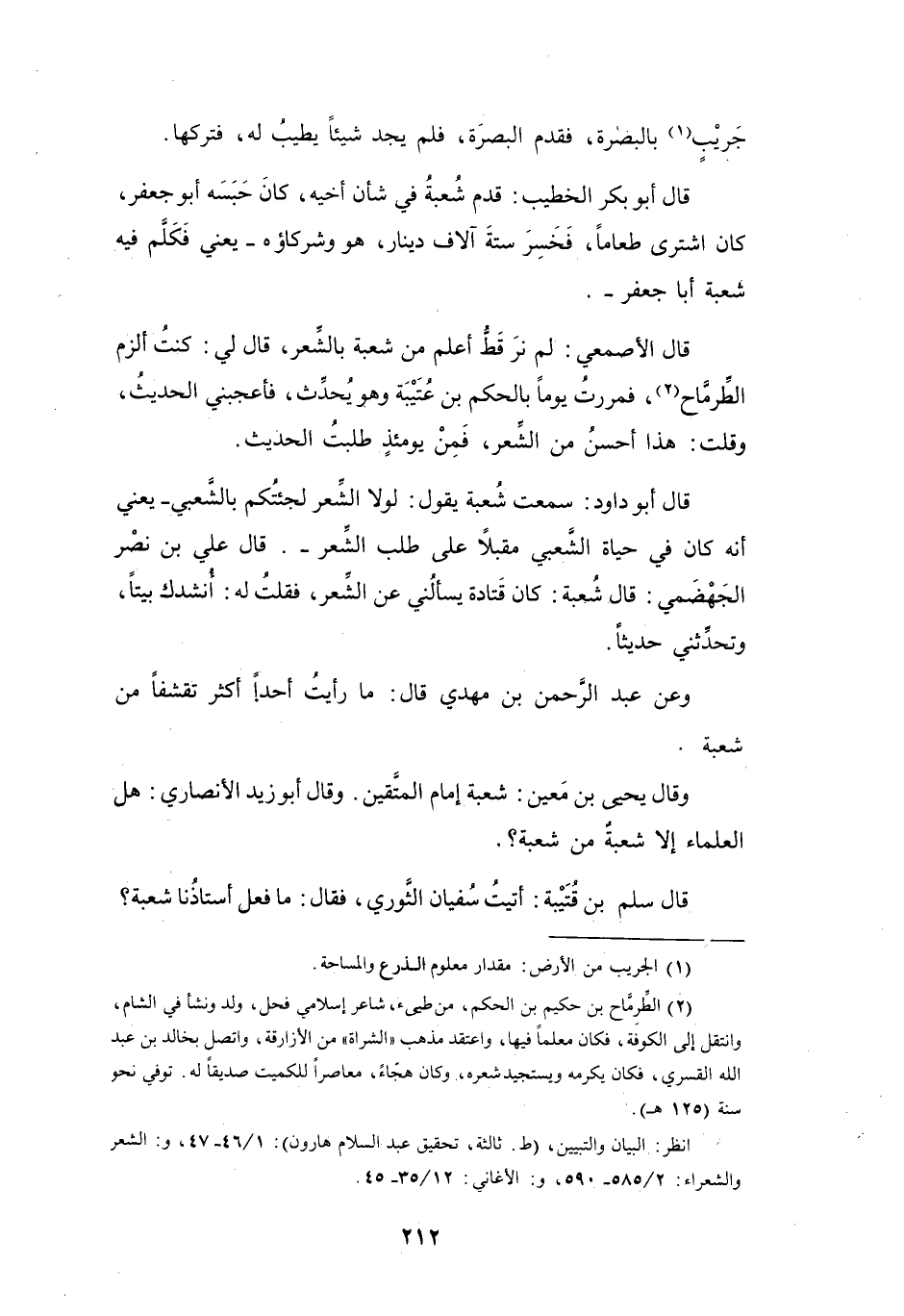 قَالَ أَبُو دَاوُدَ: سَمِعْتُ شُعْبَةَ يَقُوْلُ: لَوْلاَ الشِّعْرُ، لَجِئْتُكُم بِالشَّعْبِيِّ -يَعْنِي: أَنَّهُ كَانَ فِي حَيَاةِ الشَّعْبِيِّ مُقْبِلاً عَلَى طَلَبِ الشِّعْرِ-.