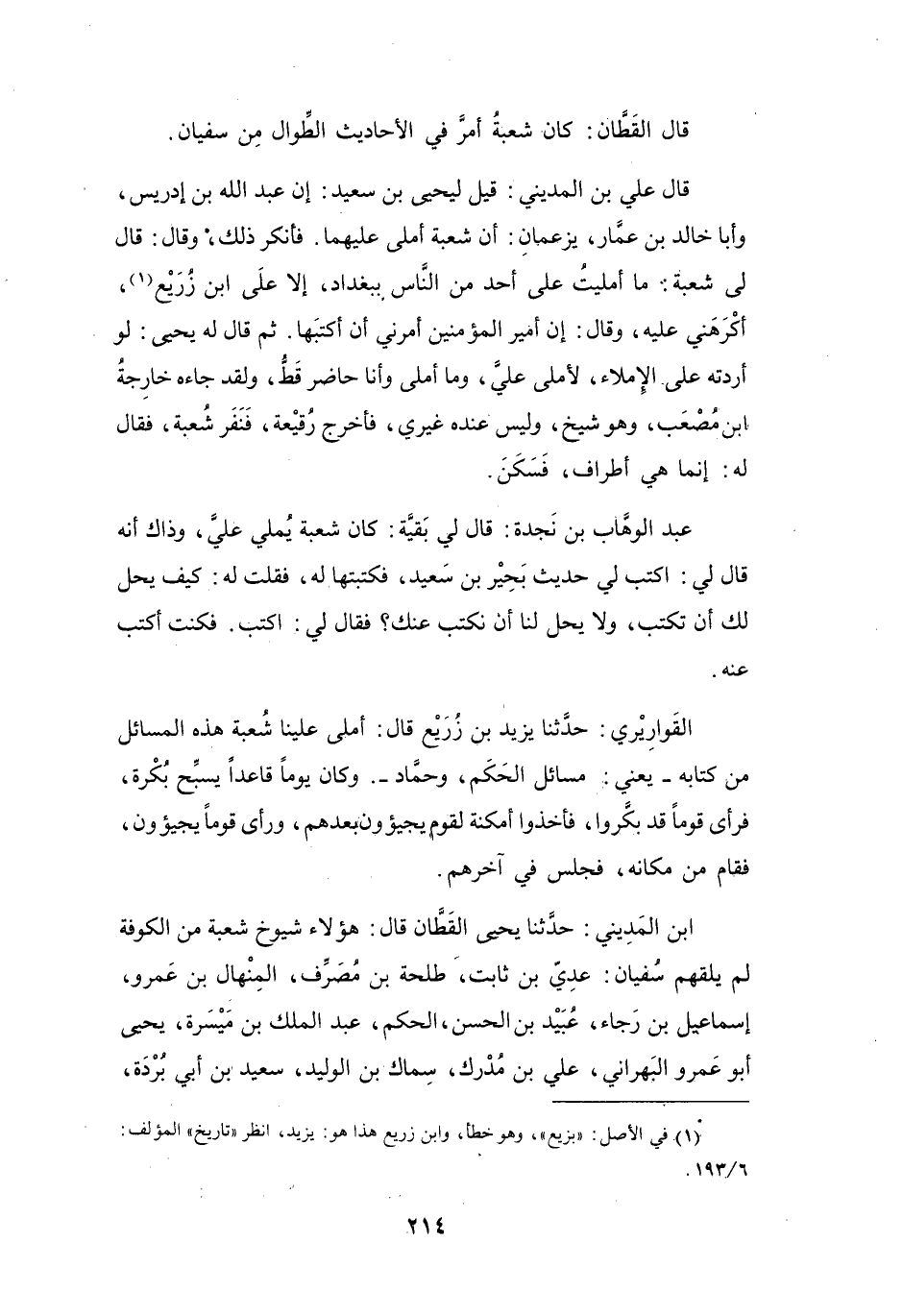 (1) في الأصل: " بزيع "، وهو خطأ، وابن زريع هذا هو: يزيد، انظر " تاريخ " المؤلف: 6 / 193.