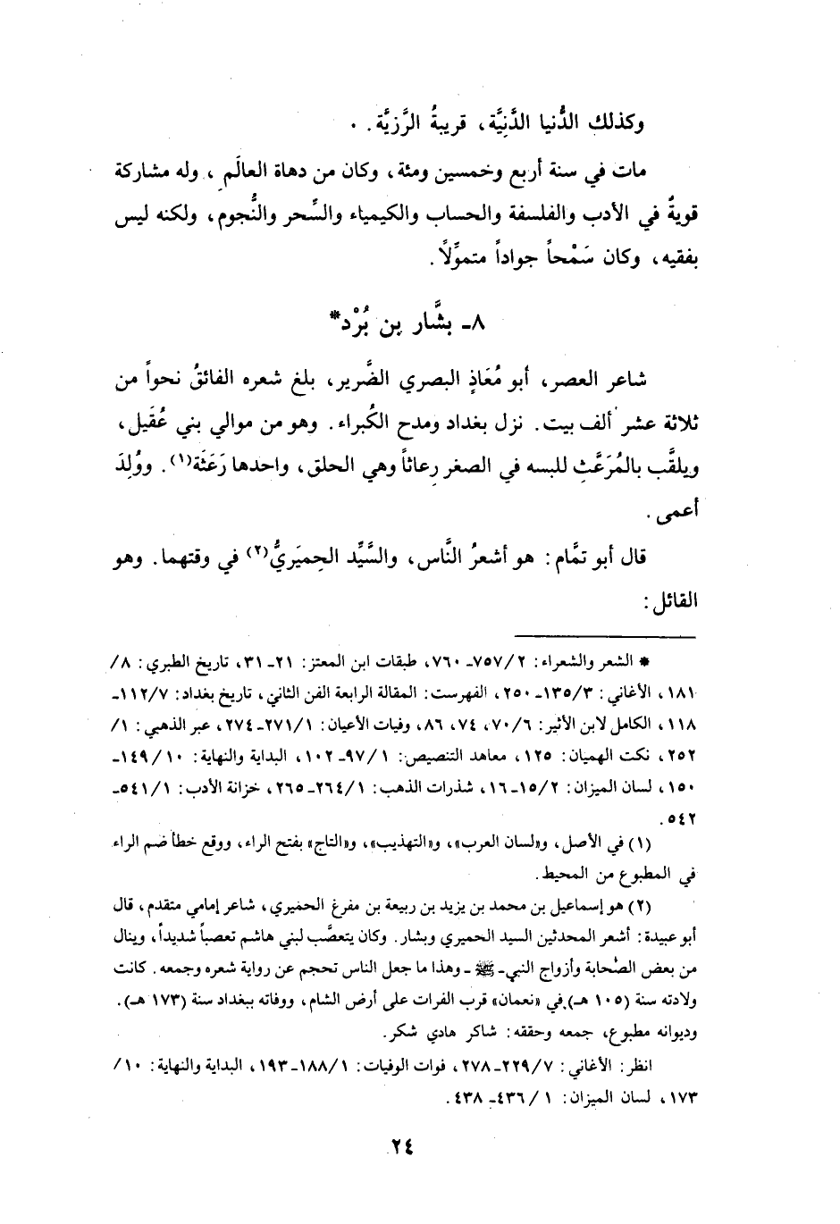 8 - بَشَّارُ بنُ بُرْدٍ أَبُو مُعَاذٍ البَصْرِيُّ الضَّرِيْرُ *
