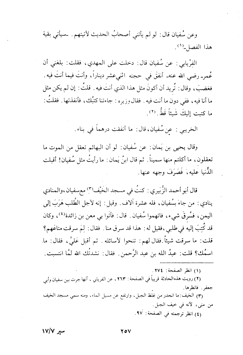 (2) رويت هذه الحادثة قريبا في الصفحة: 263، عن الفريابي، أنها جرت بين سفيان وأبي جعفر.