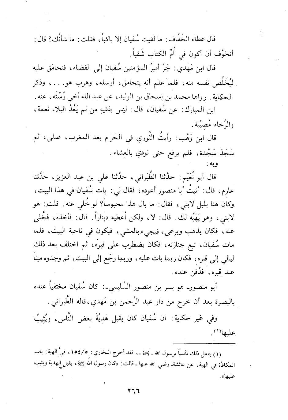 وَفِي غَيْرِ حِكَايَةٍ: أَنَّ سُفْيَانَ كَانَ يَقْبَلُ هَدِيَّةَ بَعْضِ النَّاسِ، وَيُثِيبُ عَلَيْهَا (1) .
