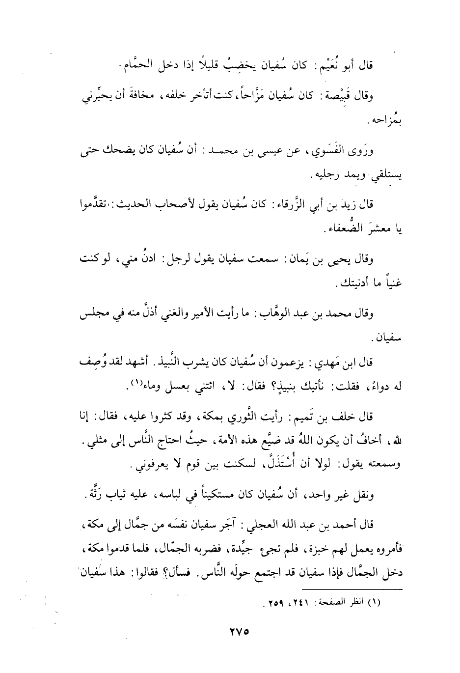 قَالَ أَبُو نُعَيْمٍ: كَانَ سُفْيَانُ يَخْضِبُ قَلِيْلاً إِذَا دَخَلَ الحَمَّامَ.