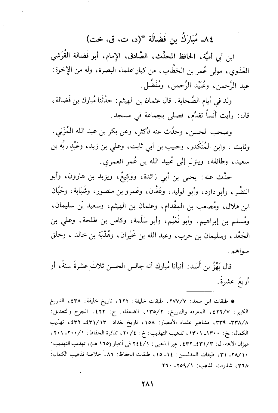 84 - مُبَارَكُ بنُ فَضَالَةَ بنِ أَبِي أُمَيَّةَ القُرَشِيُّ * (د، ت، ق، خت)