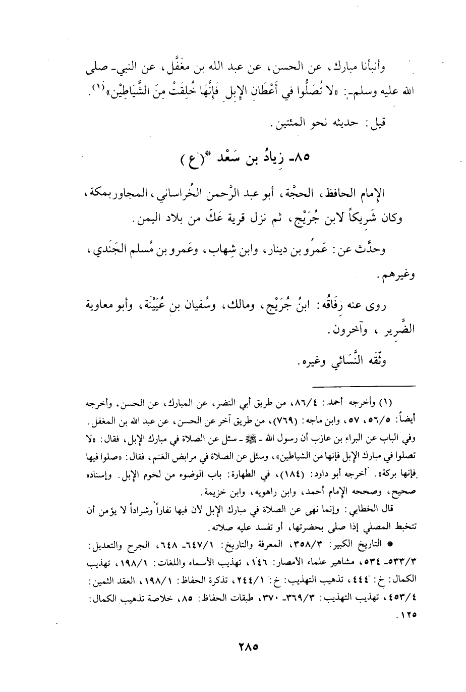 85 - زِيَادُ بنُ سَعْدٍ أَبُو عَبْدِ الرَّحْمَنِ الخُرَاسَانِيُّ * (ع)
