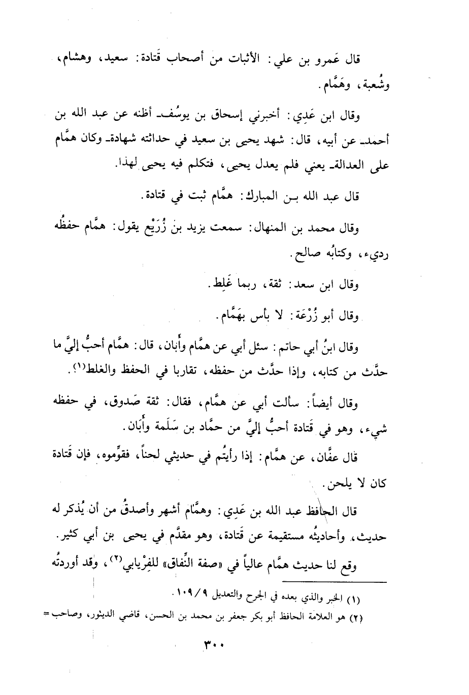 هَمَّامٌ أَحَبُّ إِلَيَّ مَا حدَّثَ مِنْ كِتَابِهِ، وَإِذَا حَدَّثَ مِنْ حِفْظِه، تَقَارَبَا فِي الحِفْظِ وَالغَلَطِ (1) .