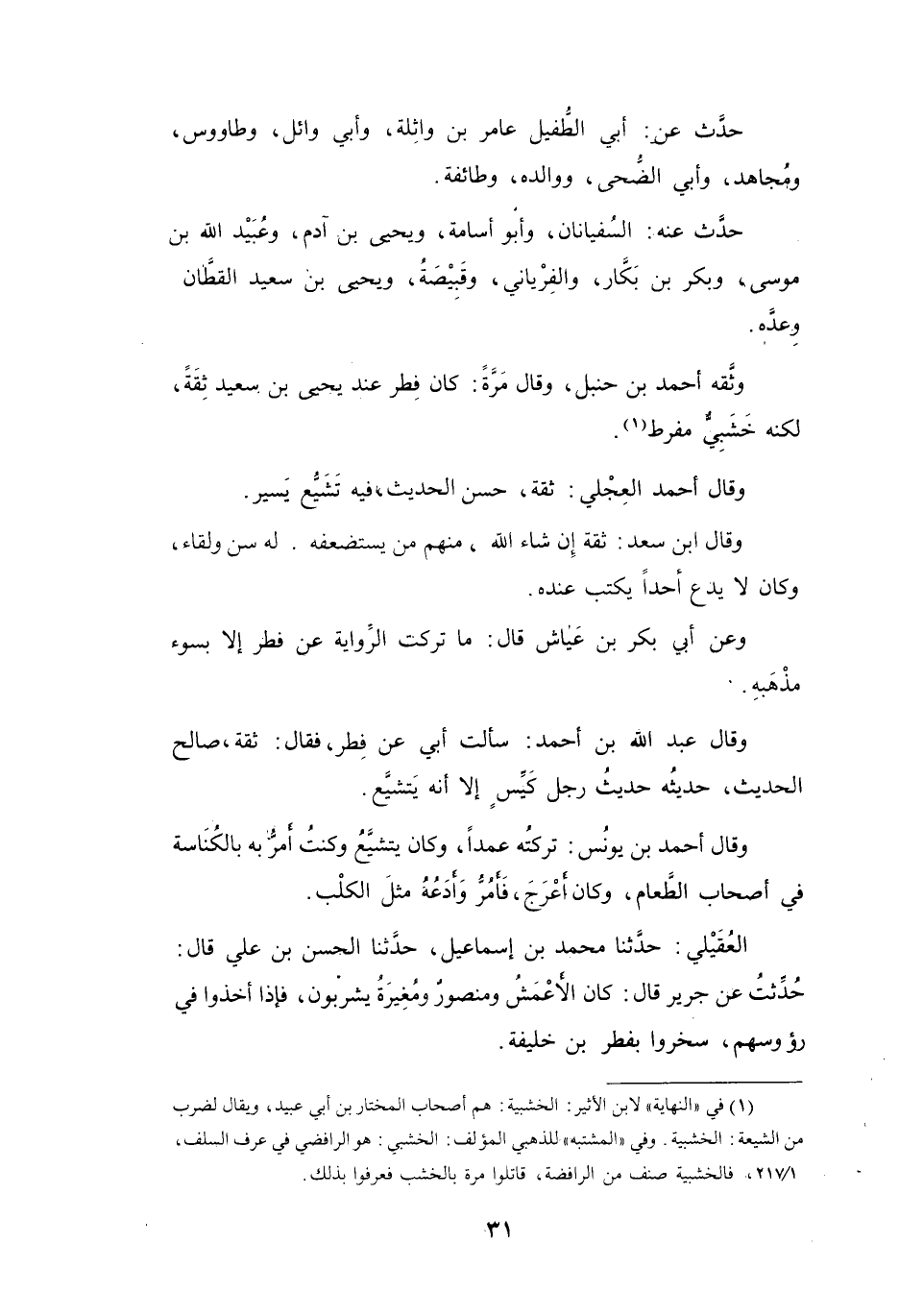 وَقَالَ أَحْمَدُ العِجْلِيُّ: ثِقَةٌ، حَسَنُ الحَدِيْثِ، فِيْهِ تَشَيُّعٌ يَسِيْرٌ.