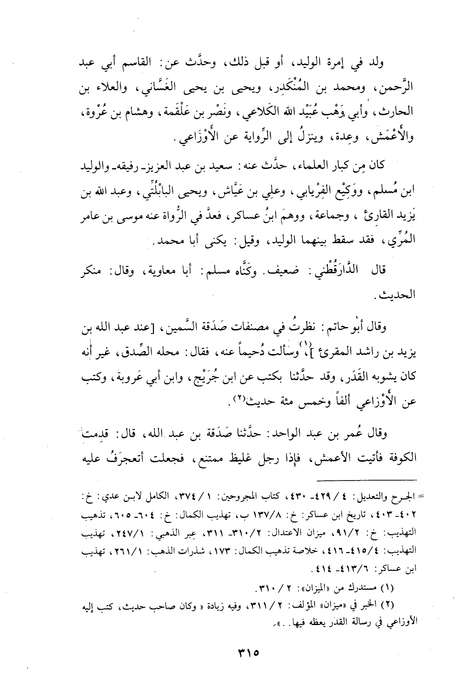 (2) الخبر في " ميزان " المؤلف: 2 / 311، وفيه زيادة " وكان صاحب حديث، كتبه إليه الاوزاعي في رسالة القدر يعظه فيها.."