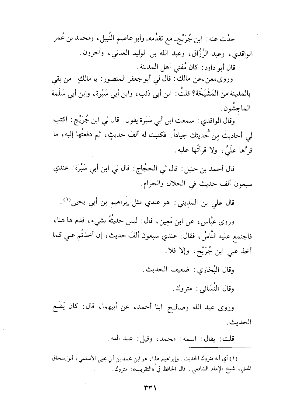 (1) أي أنه متروك الحديث. وإبراهيم هذا، هو ابن محمد بن أبي يحيى الاسلمي، أبو إسحاق المدني، شيخ الامام الشافعي.