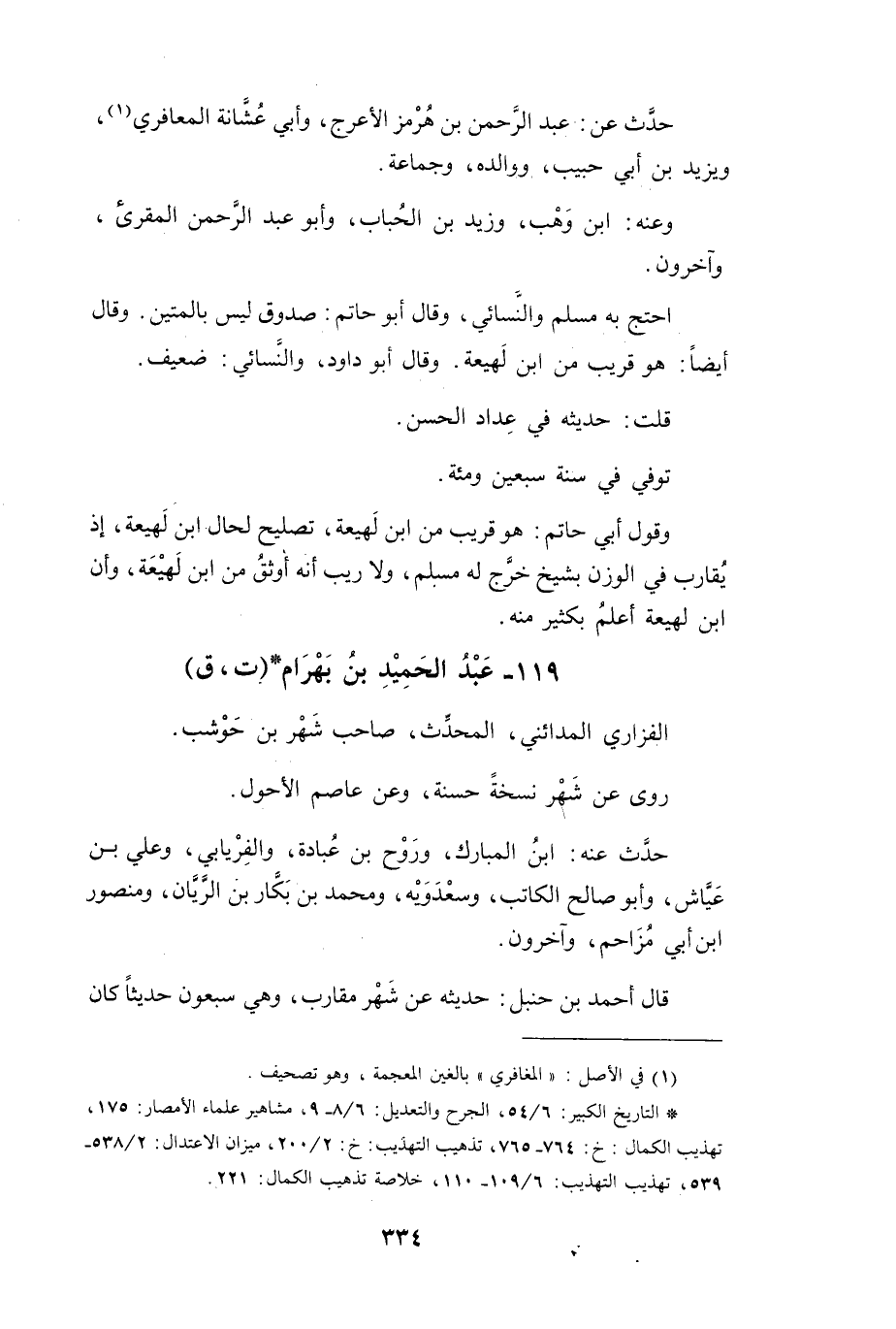119 - عَبْدُ الحَمِيْدِ بنُ بَهْرَامَ الفَزَارِيُّ المَدَائِنِيُّ * (ت، ق)