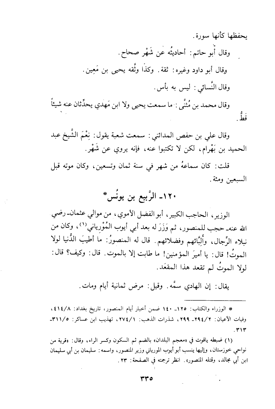 (*) الوزراء والكتاب: 125 - 140 ضمن أخبار أيام المنصور، تاريخ بغداد: 8 / 414، وفيات الأعيان: 2 / 294 - 299، شذرات الذهب: 1 / 274، تهذيب ابن عساكر: 5 / 311 - 313.