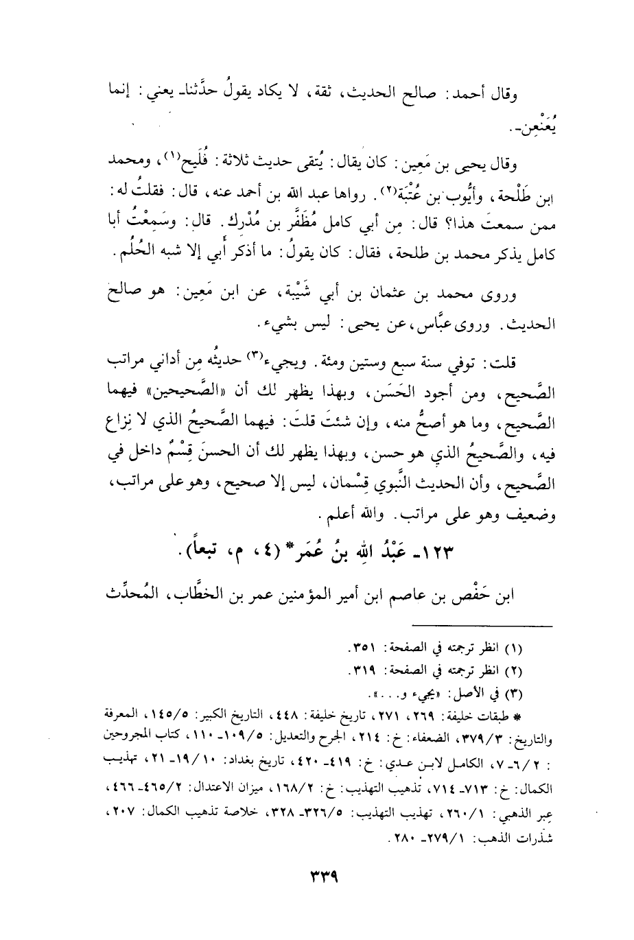 123 - عَبْدُ اللهِ بنُ عُمَرَ بنِ حَفْصِ بنِ عَاصِمٍ العَدَوِيُّ (4، م، تَبعاً)